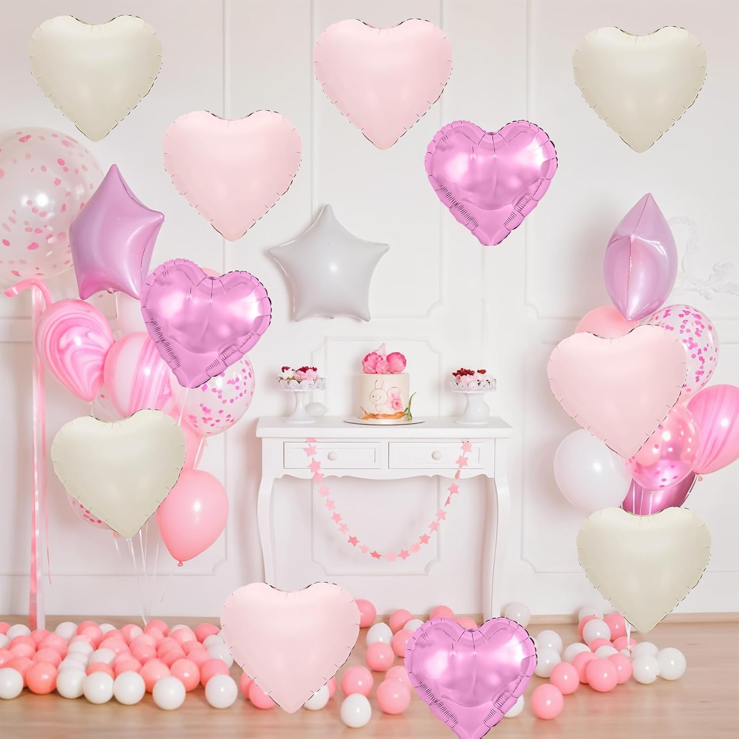 - WIDELY APPLICATION:This cream white pink purple heart balloon can be used for a variety of occasions,such as birthday,anniversary,Valentine's Day,Mother's Day,baby shower,gender reveal,weddings,engagement,bridal shower,marriage proposals and other parties,can also be used as a photo background,etc.Make a deep impression on the party guests.
