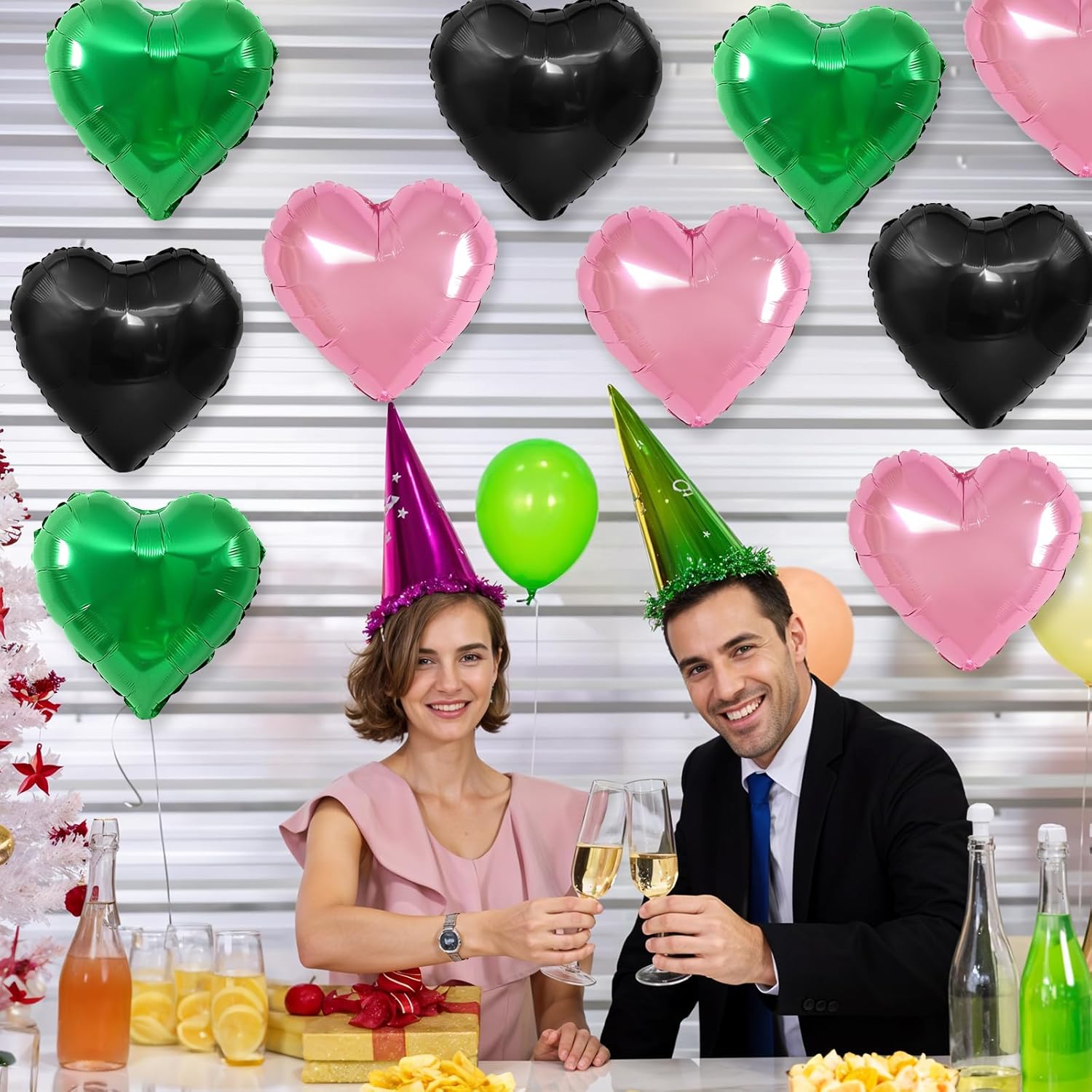 - 12PCS HEART BALLOONS:Package include 4pcs black heart foil balloons,4pcs green heart foil balloons,4pcs pink heart foil balloons,1pc straw.Large enough to help you better decorate your party.