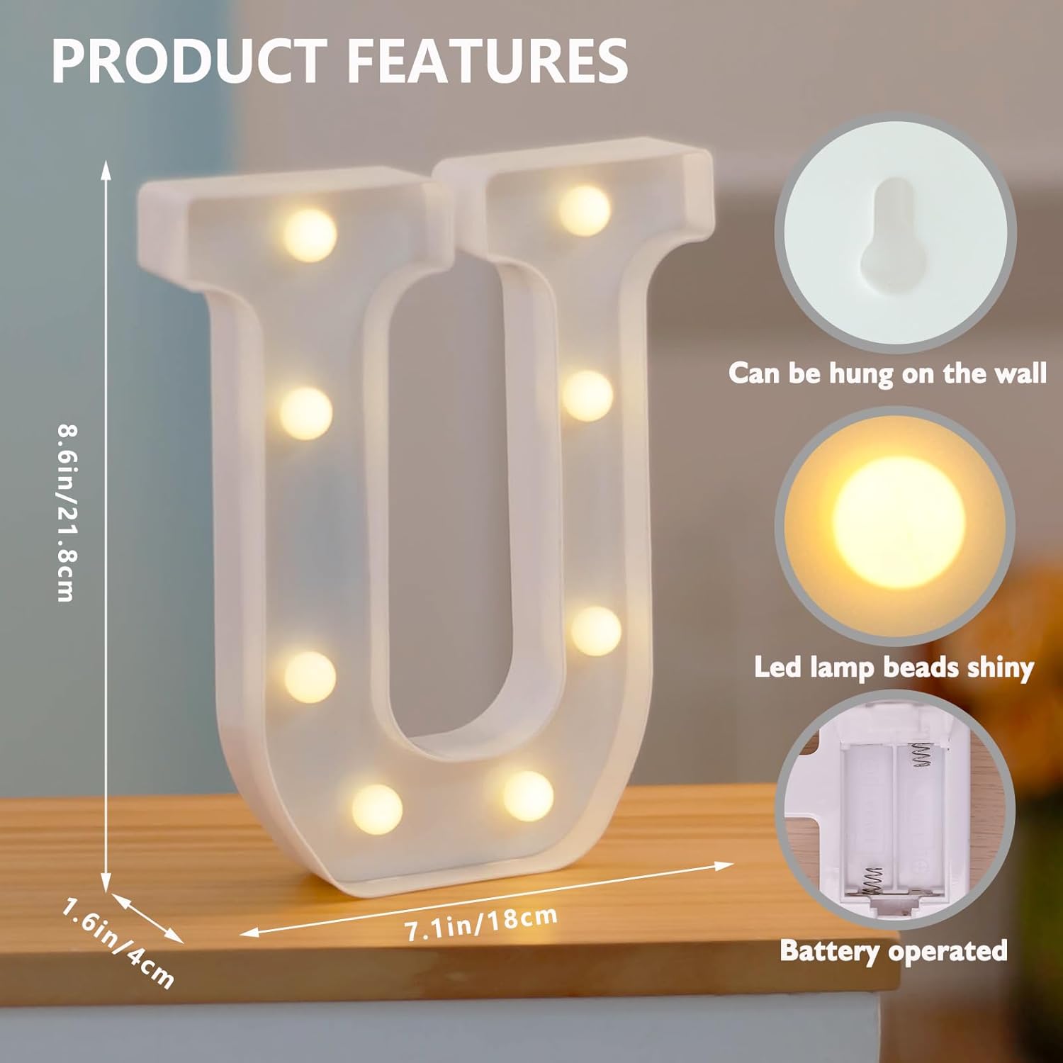 - 【Multiple Placement Options】You can put the letter light anywhere.The back of the LED letter light is designed with hanging holes, which can be easily hung on the wall or placed on a flat surface, to meet the needs of different scenarios, making the decoration more free and convenient.