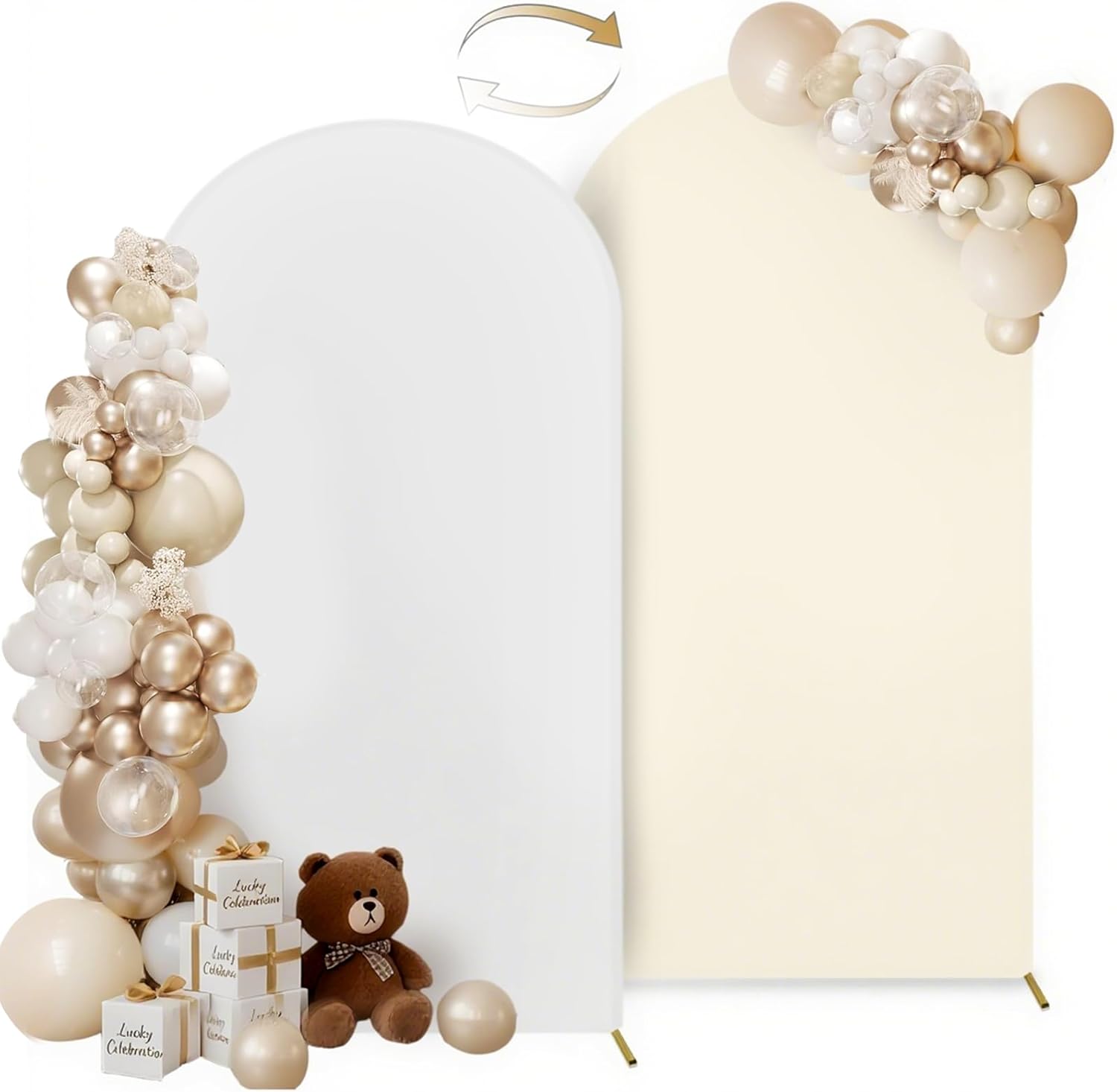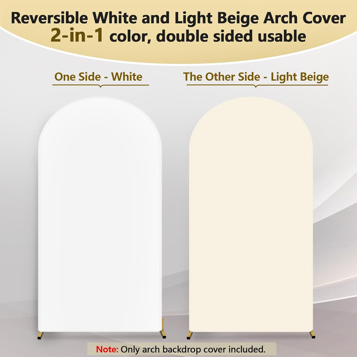 - Thick Spandex Arch Cover: This 7.2 ft white and light beige arch backdrop cover is made of stretchy spandex, not see through, 2-sided and zipper design for seamless decoration, perfectly display your party decoration on either side โ One Arch Cover with Double Color