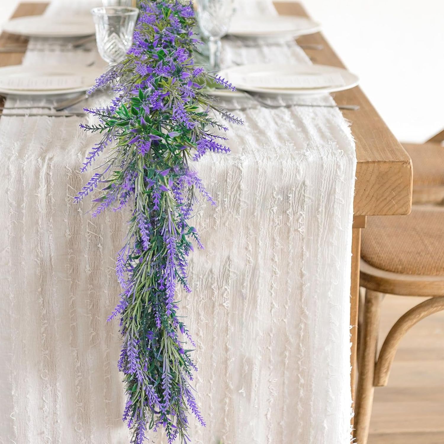 - 🍂🍂【All-Seasons Garland Decor】: The handmade artificial lavender garland is a year-round decor essential, embodies the rich symbolism of lavender - love and elegance. Elegant mixed lavender garland suits any season, which is the best choice for wedding arch, table centerpiece, wedding garland, backdrops decor, farmhouse garland, wedding arches, hanging vine decorations, fireplace mantle garland, banquet tables, home decor and other party decoration. You can also use it to DIY wreath, welcome sign, or decor fireplace, windowsill, adding a farmhouse and greenery style to your home.