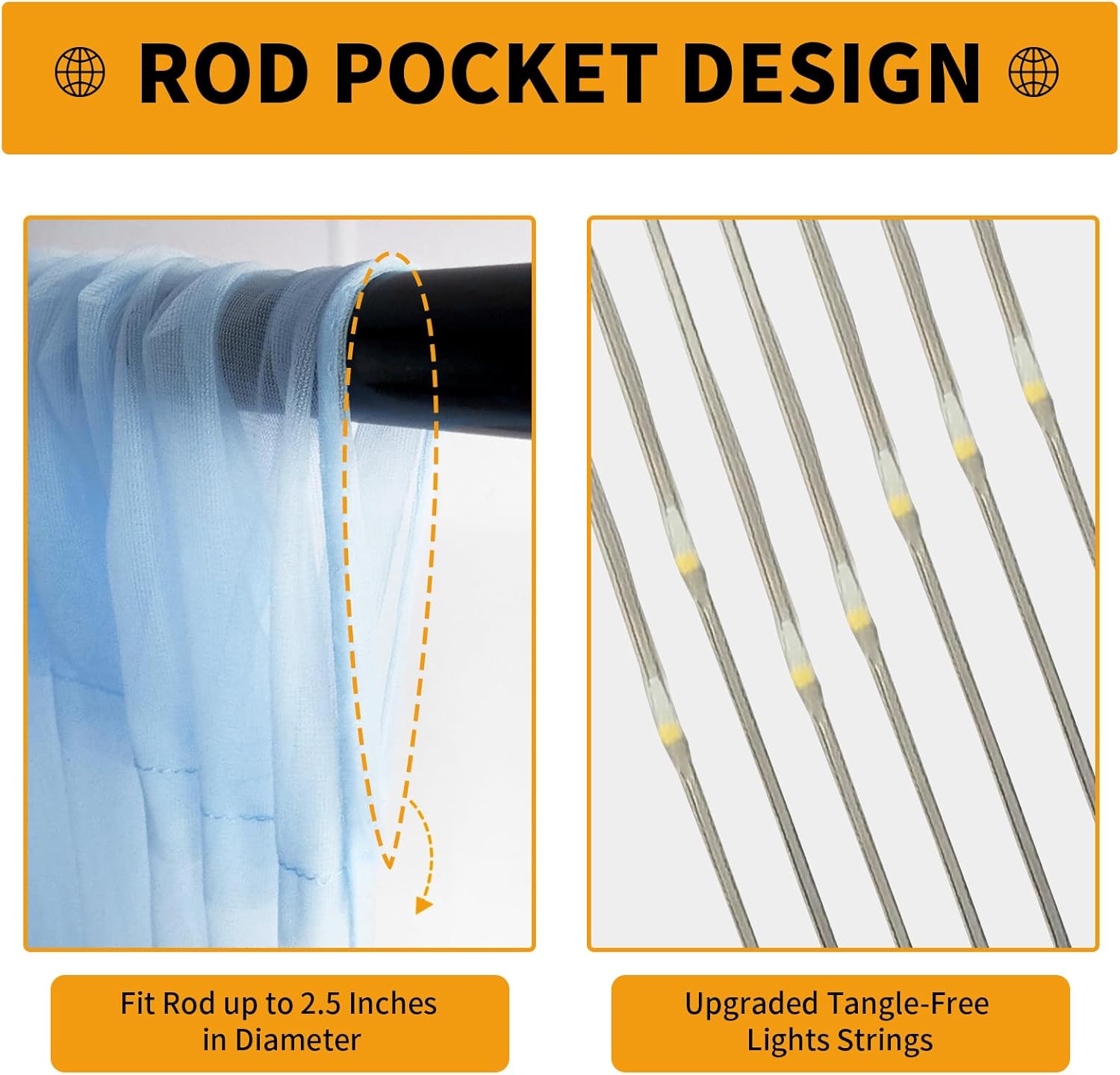 - Premium Tulle Fabric: Crafted from soft elastic tulle with natural drape and wrinkle-free texture. Lightweight & breathable for dreamy floating effects. Reinforced rod pocket (2.5" diameter) fits all standard stands. Reusable & machine-washable
