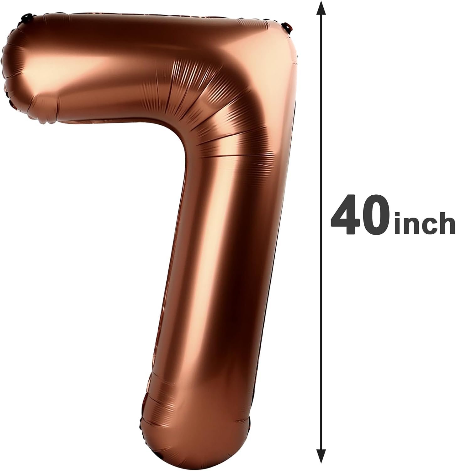 - 1.Make Party Charming with Dark Brown Number Balloon: You will receive an uninflated 40 inch 7 balloon number. Big number balloons are always the best statement of romance and surprise. Coffee brown balloon symbolize vitality exoticism, adding glamour to birthday parties. Bright metallic dark brown and huge size make 7 birthday balloon a highlight of special parties. Choose one or more numbers from 0-9 number balloon, and use 7 17 27 37 47 57 67 77 87 97 balloon numbers to create a lively party!