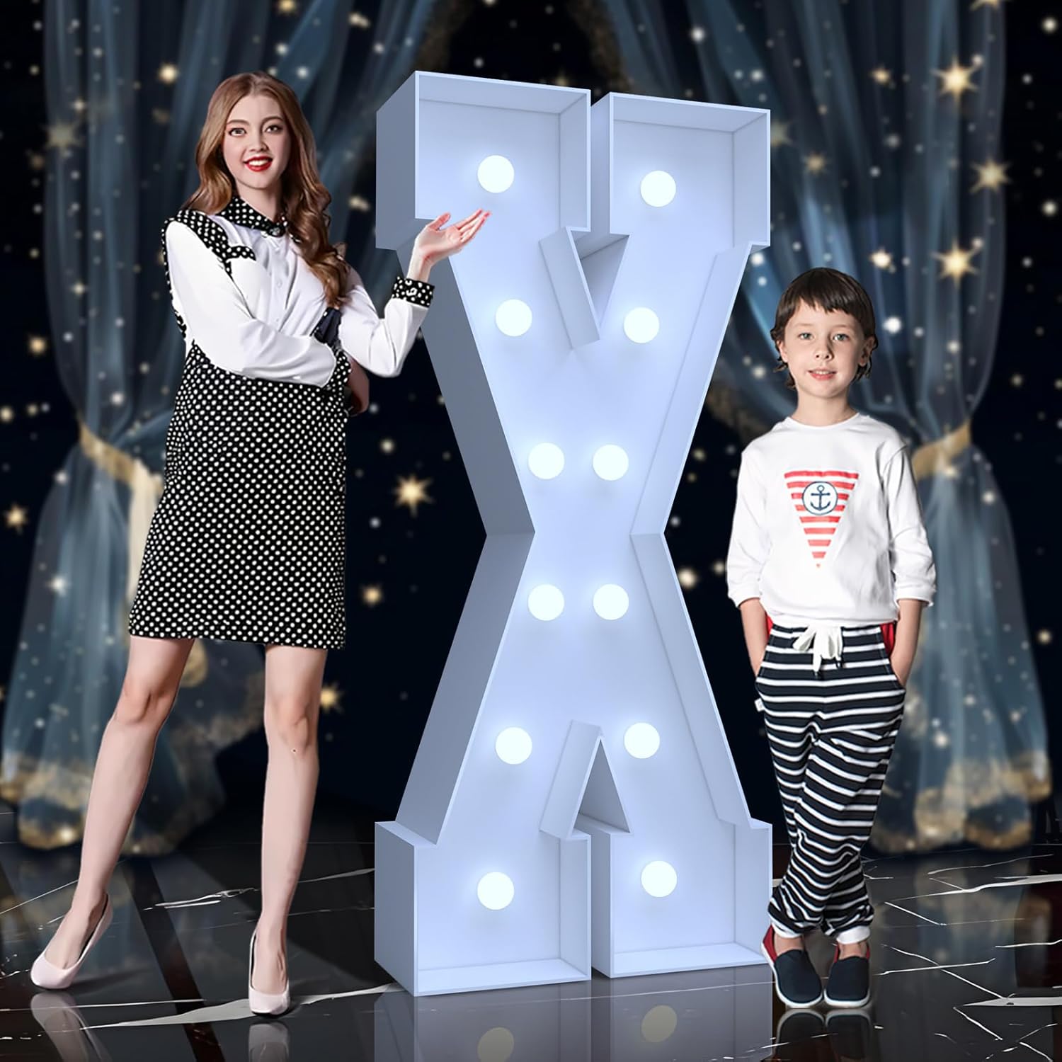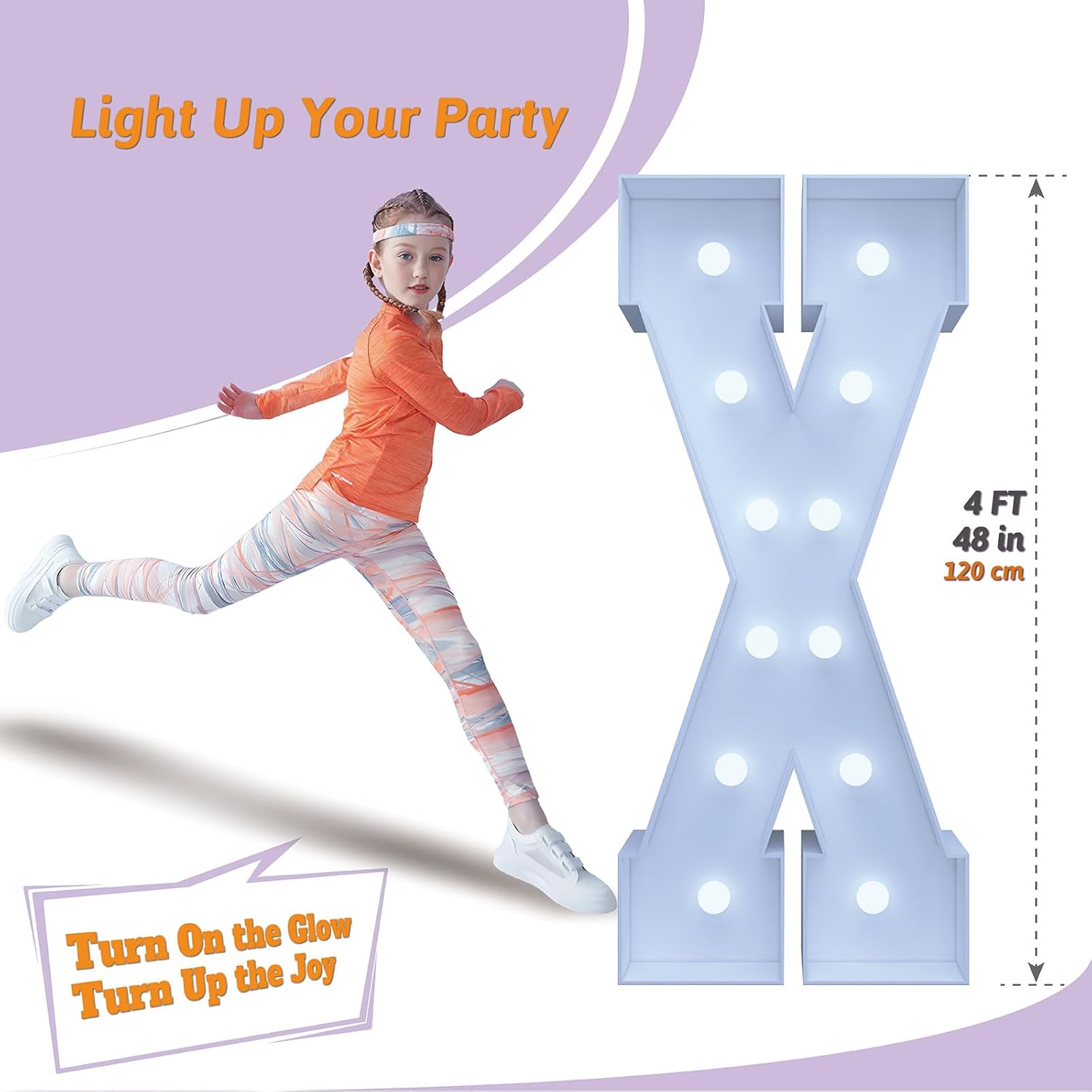 4FT Marquee Light Up Letters X – Cool White LED, Easy to Assemble Foam Board with Back Support, Large Marquee Light Up Letters for Birthday, Wedding, Party, Anniversary, Baby Shower Decor
