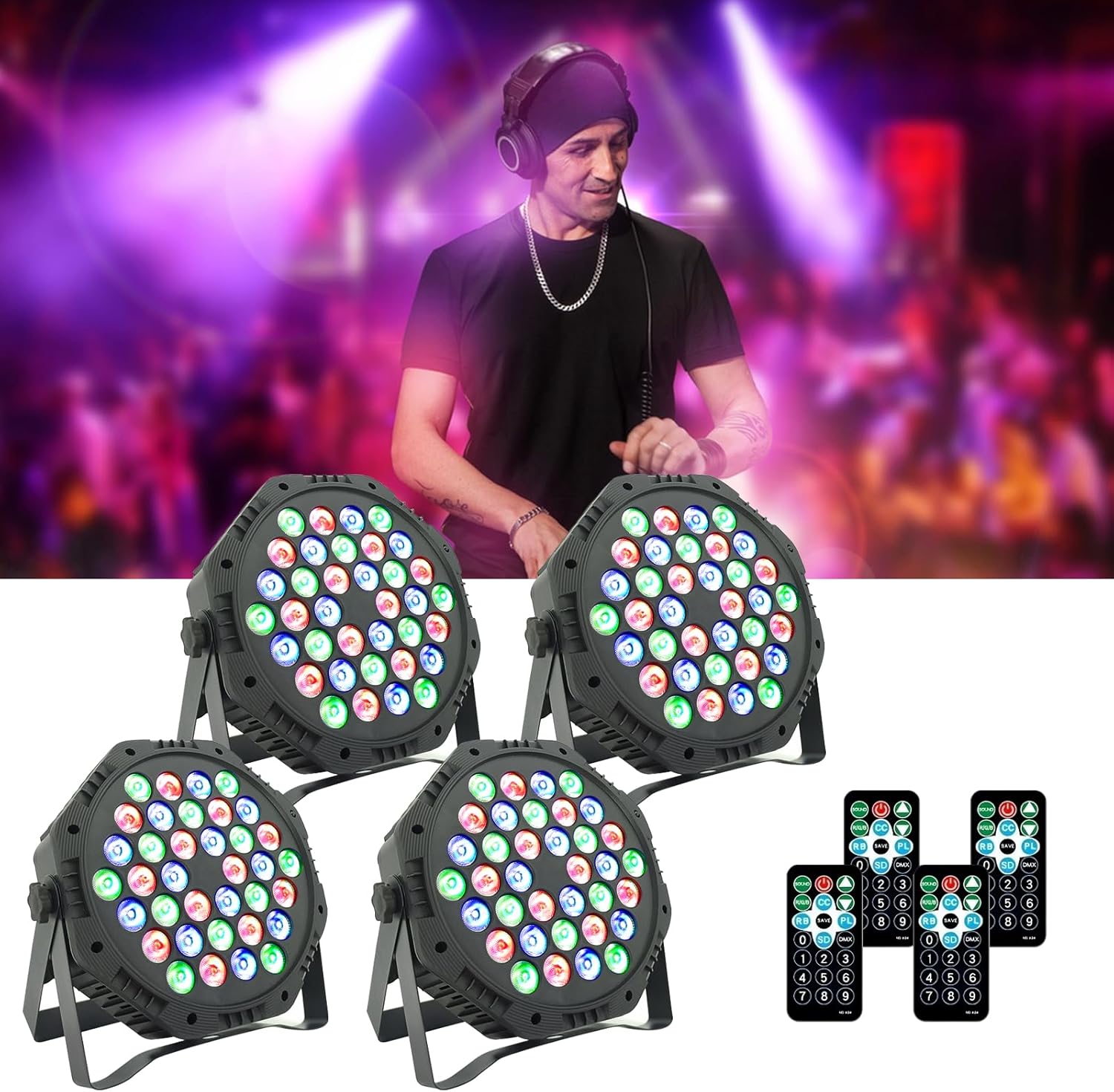 Yiixuyo-LED Par Lights DJ Stage Light Corded RGB 36 LED with Sound Activated Control DJ Uplighting for Wedding Party Club Christmas Stage Lighting - 4Pack