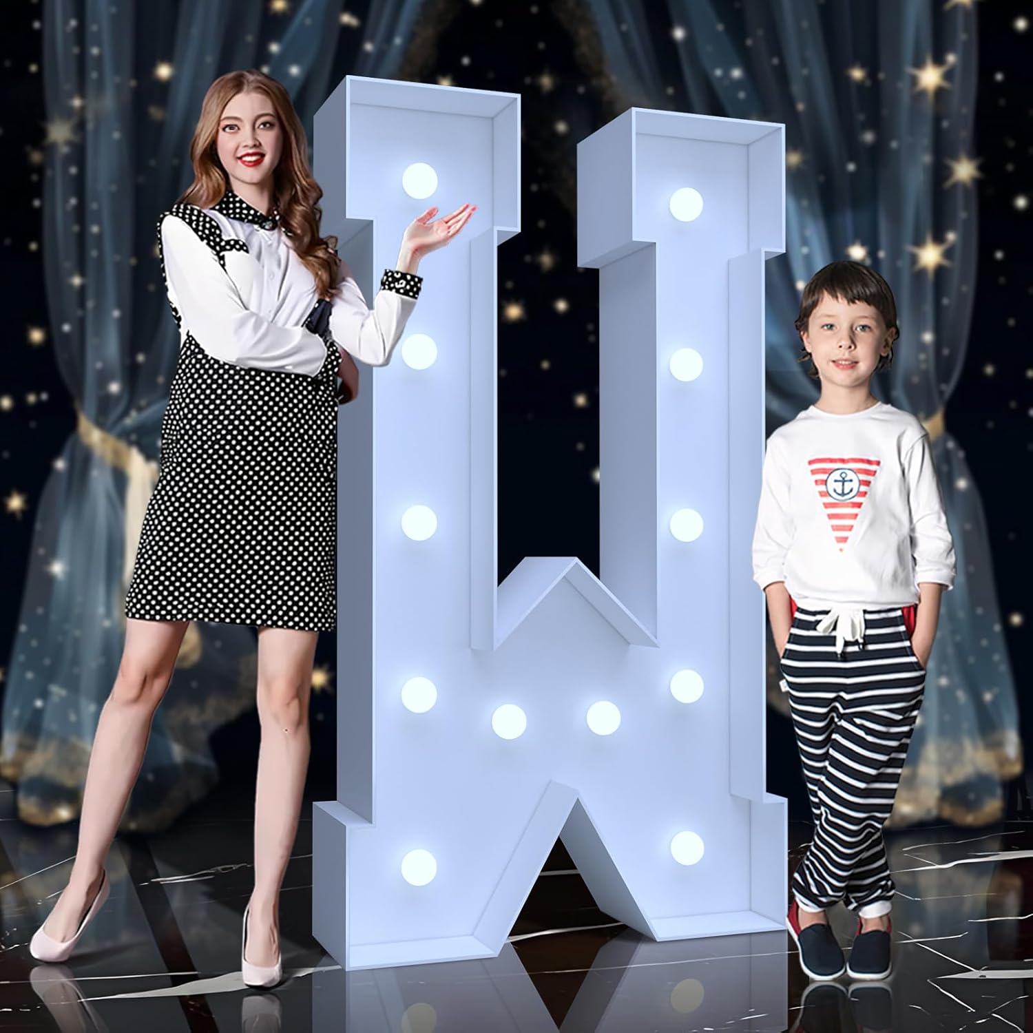 4FT Marquee Light Up Letters W – Cool White LED, Easy to Assemble Foam Board with Back Support, Large Marquee Light Up Letters for Birthday, Wedding, Party, Anniversary, Baby Shower Decor