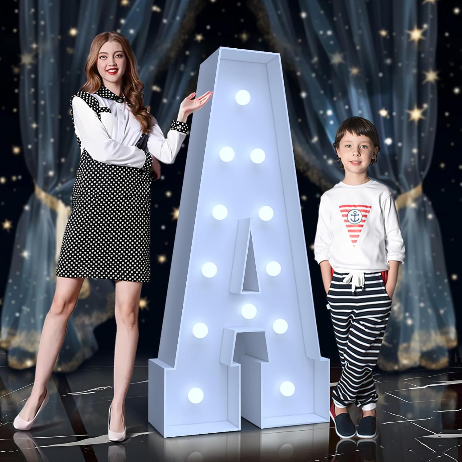 4FT Marquee Light Up Letters A – Cool White LED, Easy to Assemble Foam Board with Back Support, Large Marquee Light Up Letters for Birthday, Wedding, Party, Anniversary, Baby Shower Decor