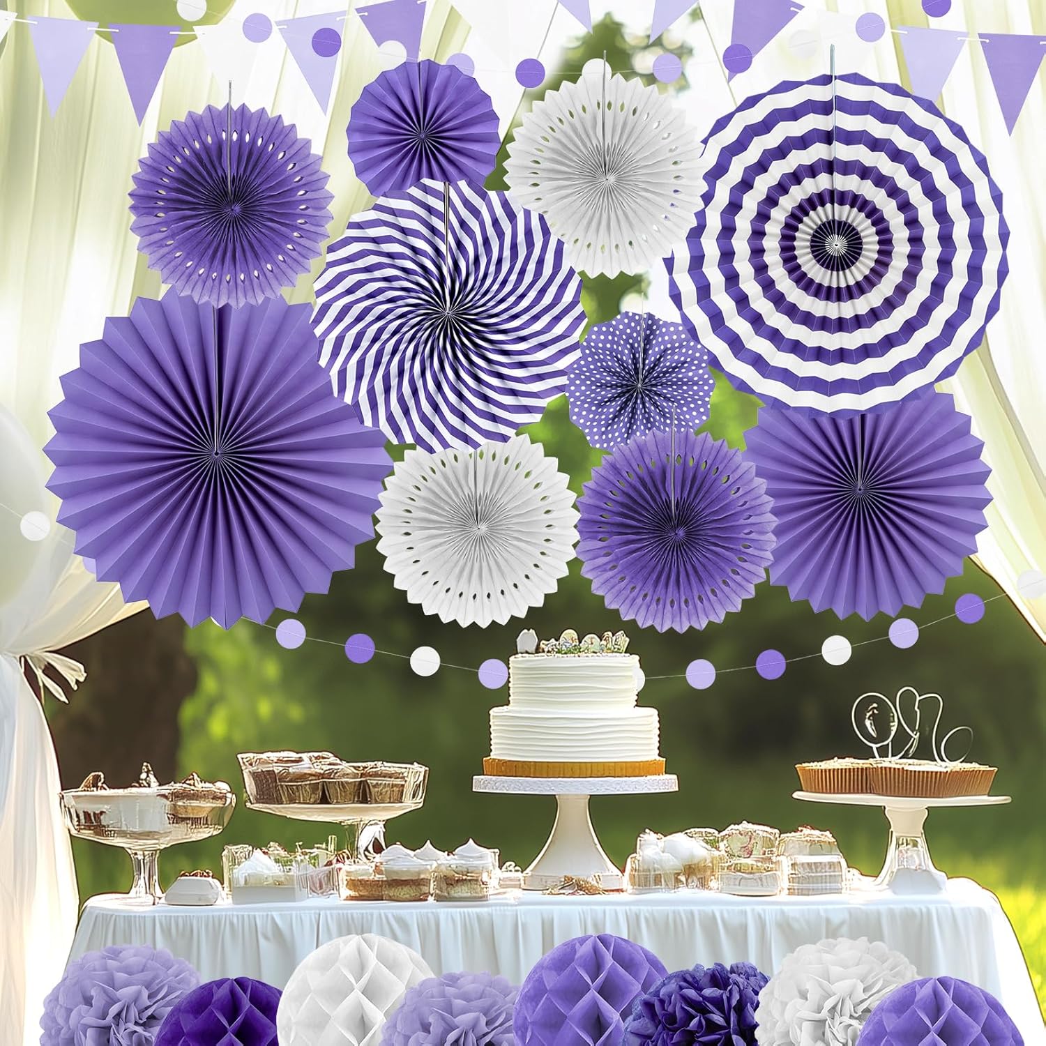 Purple Party Decorations,23Pcs Lavender Birthday Decorations with Hanging Paper Fans,Pom Poms Flowers Packs for Girls Women Birthday Party, Bridal Shower,Baby Showers,Wedding