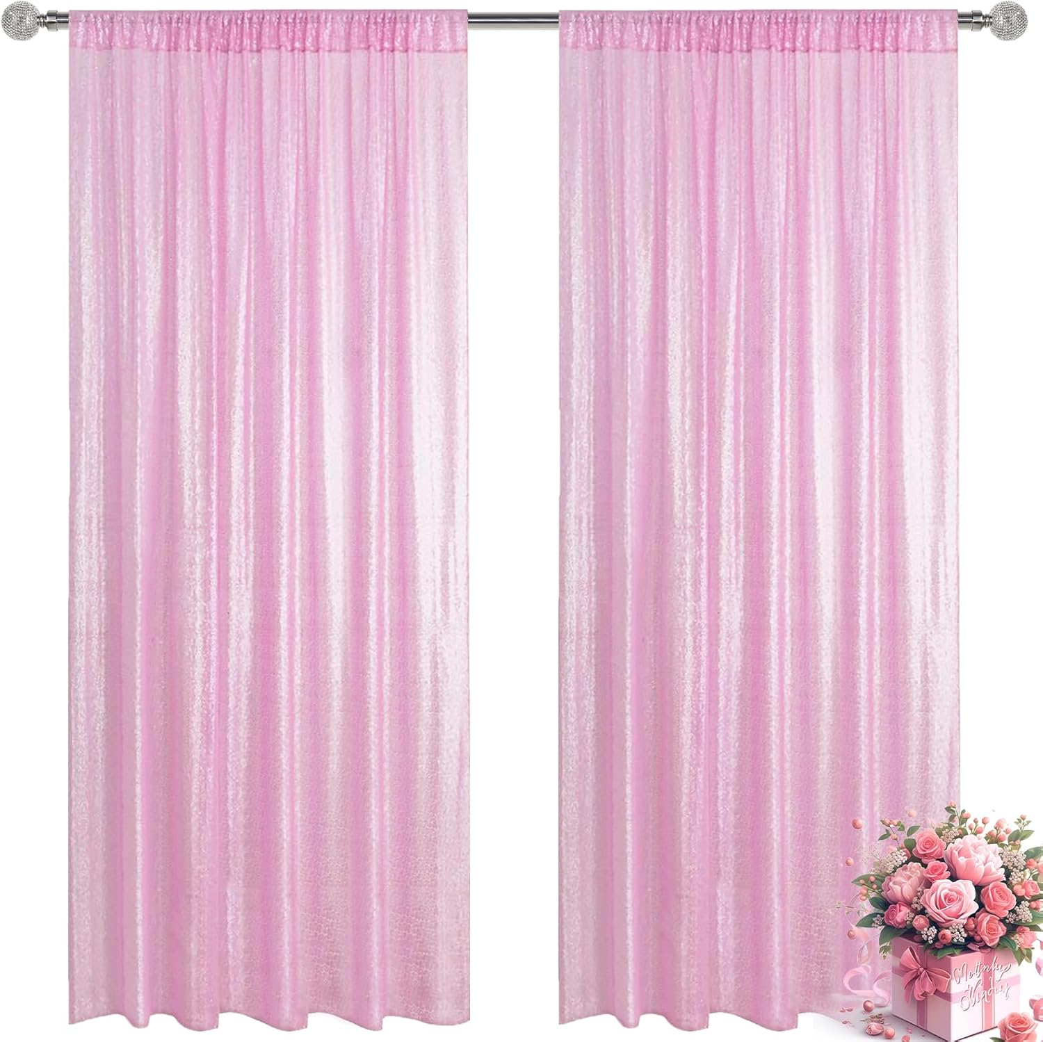 Matte Pink Sequin Backdrop Curtain 2 Pieces 2FTx8FT Glitter Photography Backdrop for Party Wedding Birthday Christmas Decorations