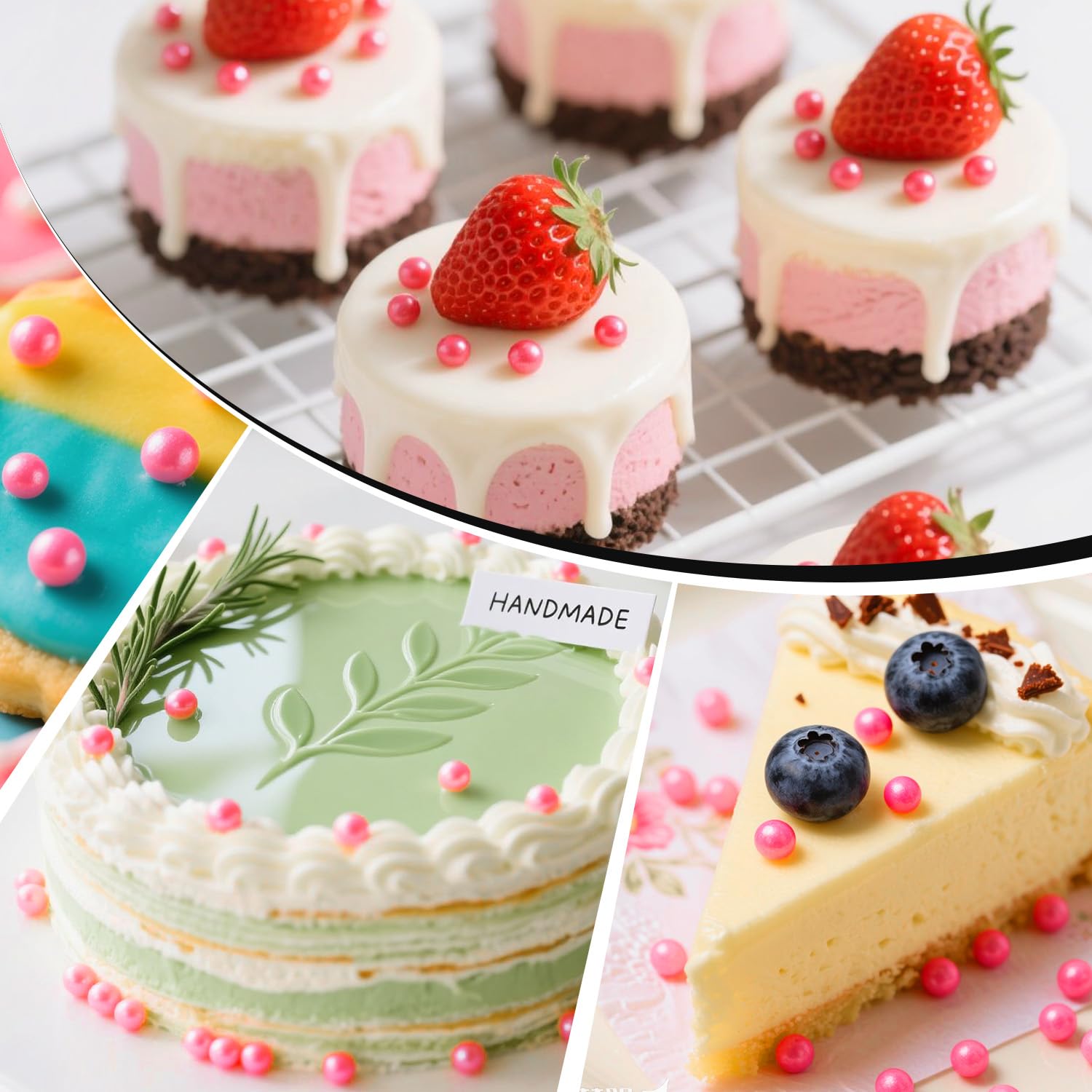 - These Edible Deep Pink Pearl Sprinkles feature a mixed-size design. They are a perfect match for cakes, cupcake toppers, donuts, decorating cookies, ice cream, waffles, and any dessert you can imagine to turn them into a baking delight.