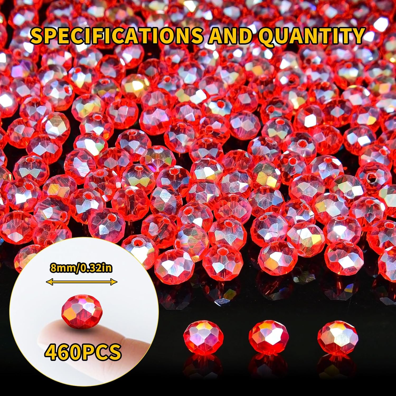 460Pcs 8mm Crystal Glass Beads for Jewelry Making Beads for Bracelets Necklace Pendants Making Supplies(Red)