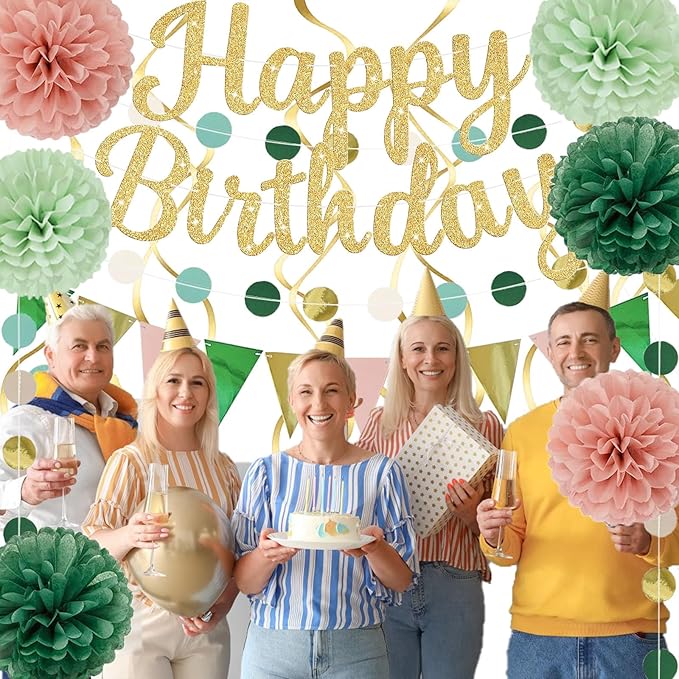 - Sage Green Birthday Decorations: The elegant fusion of sage green, matcha green, soft dusty rose, and shimmering gold creates a fresh yet refined atmosphere, striking a perfect balance between natural serenity and festive charm. This timeless color palette is perfect for girls and women, adding effortless beauty and joyful elegance to any themed celebration and every special occasion.