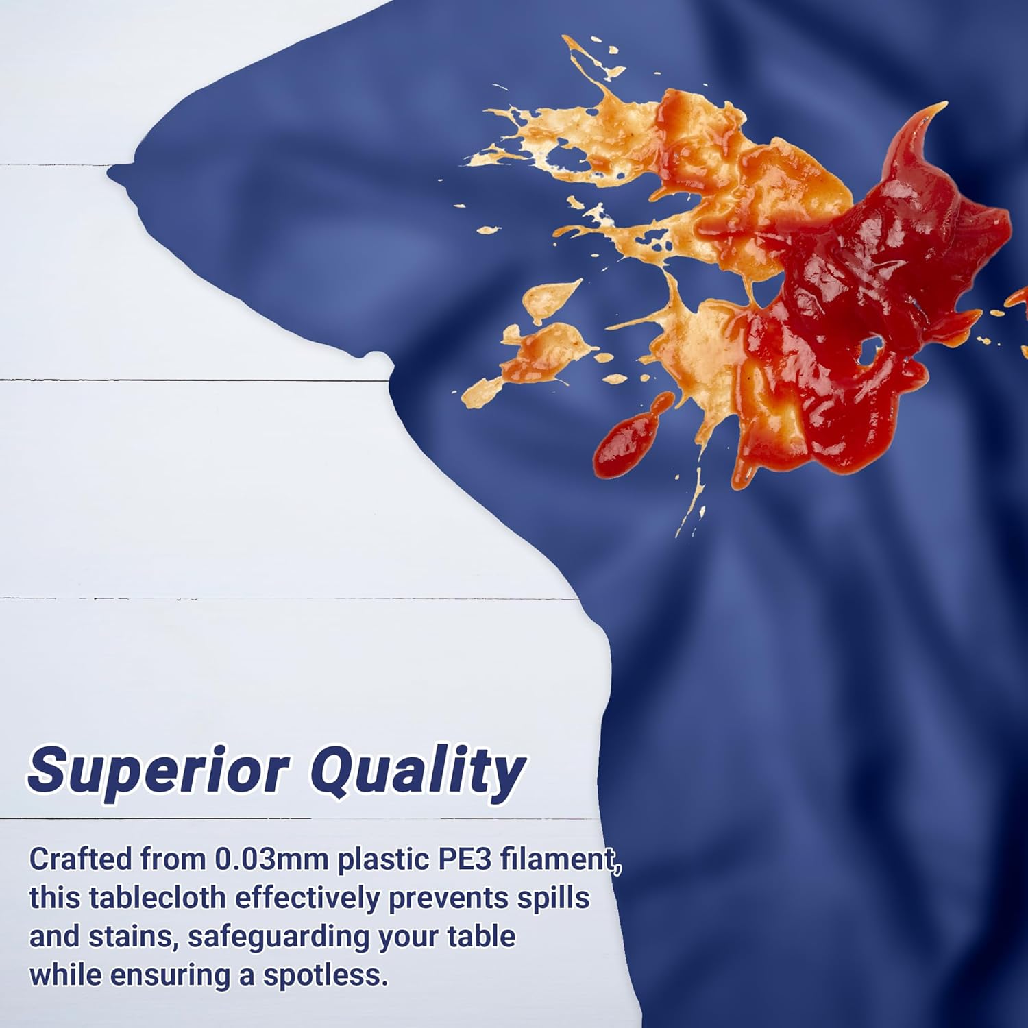 - High-End Materials: Crafted from 0.03mm PE3 plastic, this waterproof plastic tablecloth is disposable and can withstand both spills and protect the table, as well as falling glitter. Our plastic table cover materials are sturdy enough to withstand lively baby shower decorations or outdoor picnics, while the oil-resistant surface ensures quick wipe-downs or hassle-free disposal post-event.