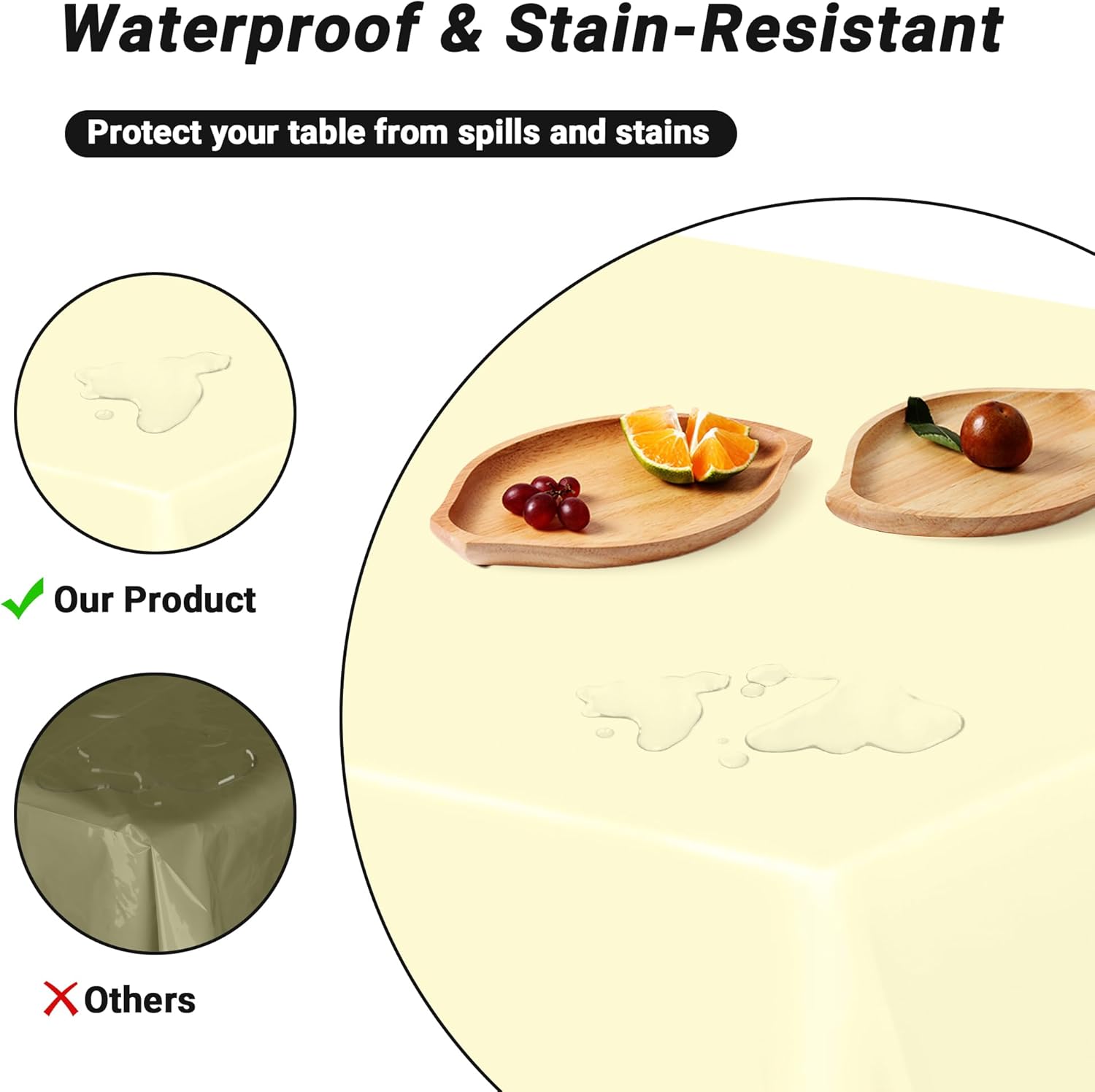 - Versatile Use: Beyond celebrations, this ivory plastic table cloth effortlessly transitions between diverse settings, blending practicality with aesthetic versatility. Whether indoors or outdoors, the understated elegance of a rectangle tablecloth elevates dining tables, buffet spreads, or temporary setups, while the solid construction of table cover ensures reliability across seasons and themes.