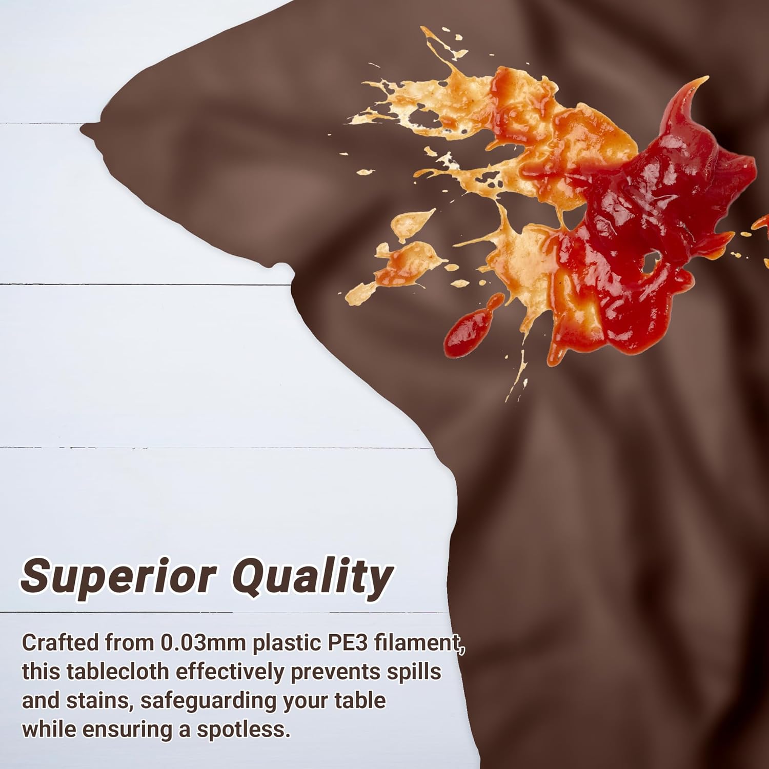 - Premium Quality: Crafted from 0.03mm premium PE3 plastic, this brown table cloth resists spills, stains, and messes, making it perfect for lively gatherings, such as BBQ party decorations or picnic birthday party decorations. The oil-proof surface repels grease, while the picnic table cover solid design allows for easy cleaning and adjustment, ensuring a flawless presentation at any event.