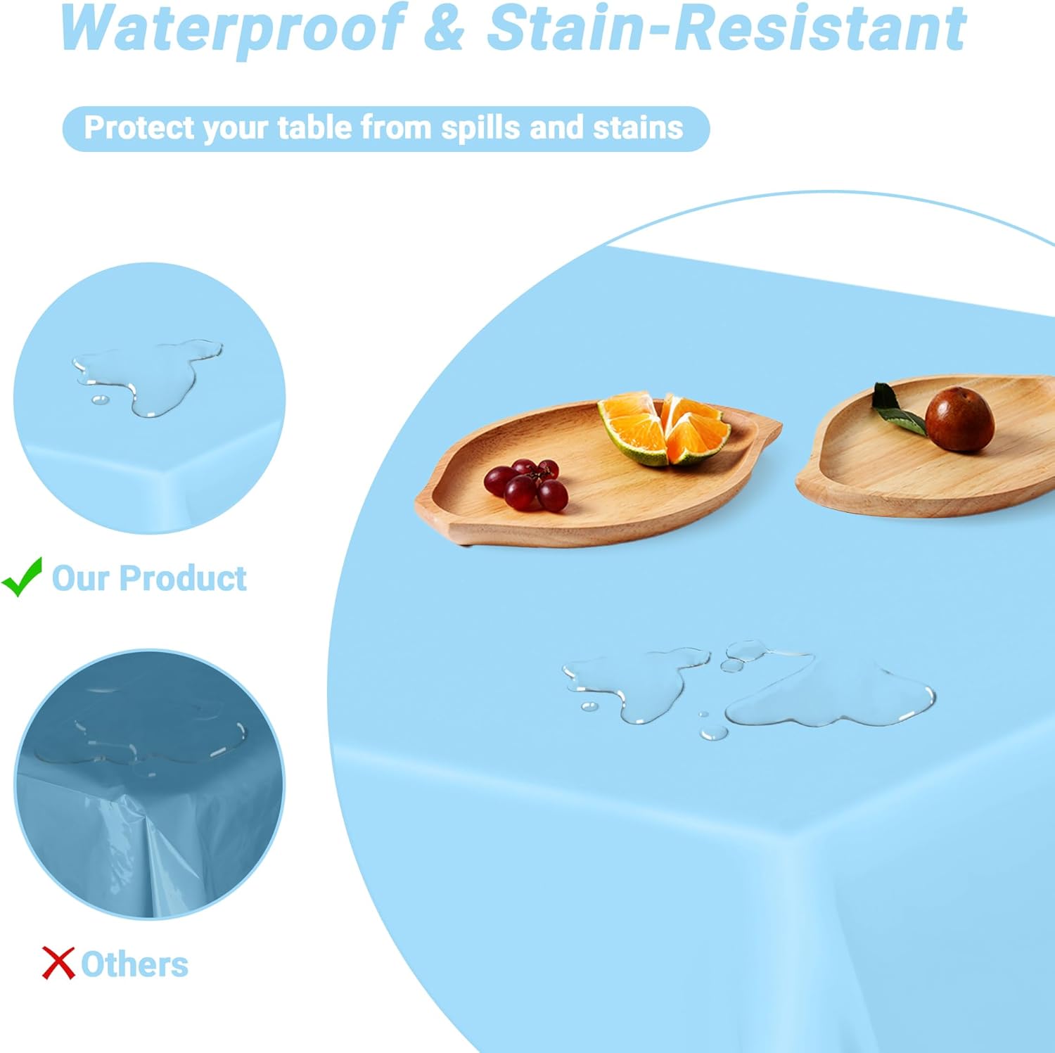 - Superior Quality: Made from 0.03mm premium PE3 plastic, this sky blue table cloth effortlessly repels spills, grease, and stains, making it perfect for vibrant events like baby birthday decorations or outdoor picnic table cover setups. The surface of the waterproof tablecloth ensures messy anniversary table decorations or baby party decorations leave no trace, while the material holds up to repeated adjustments.