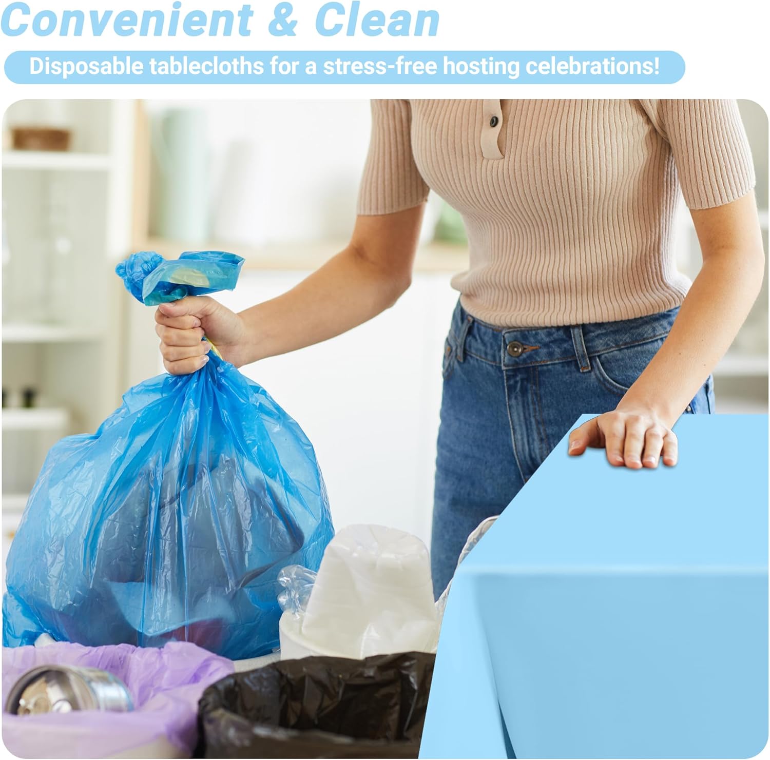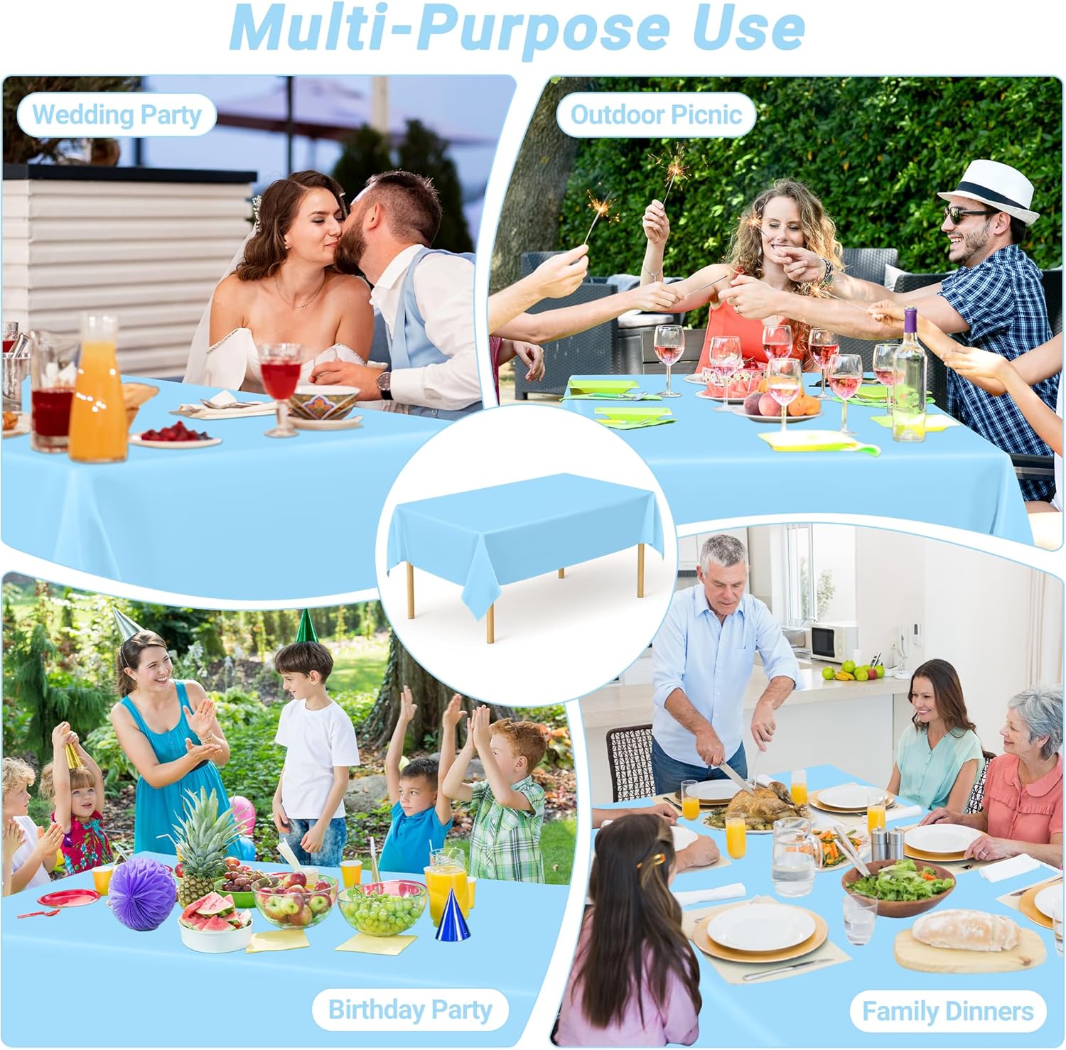 - Vibrant Utility: Versatile and practical, this table cloth for picnic table isn't just for tables—use it as a crafting surface, art project protector, or vibrant background for baby birthday decor. Its calming sky-blue plastic tablecloths bring a fresh, airy feel to weddings, holiday parties, birthday parties, and anniversary table decorations, effortlessly transitioning from laid-back gatherings to elegant affairs.​