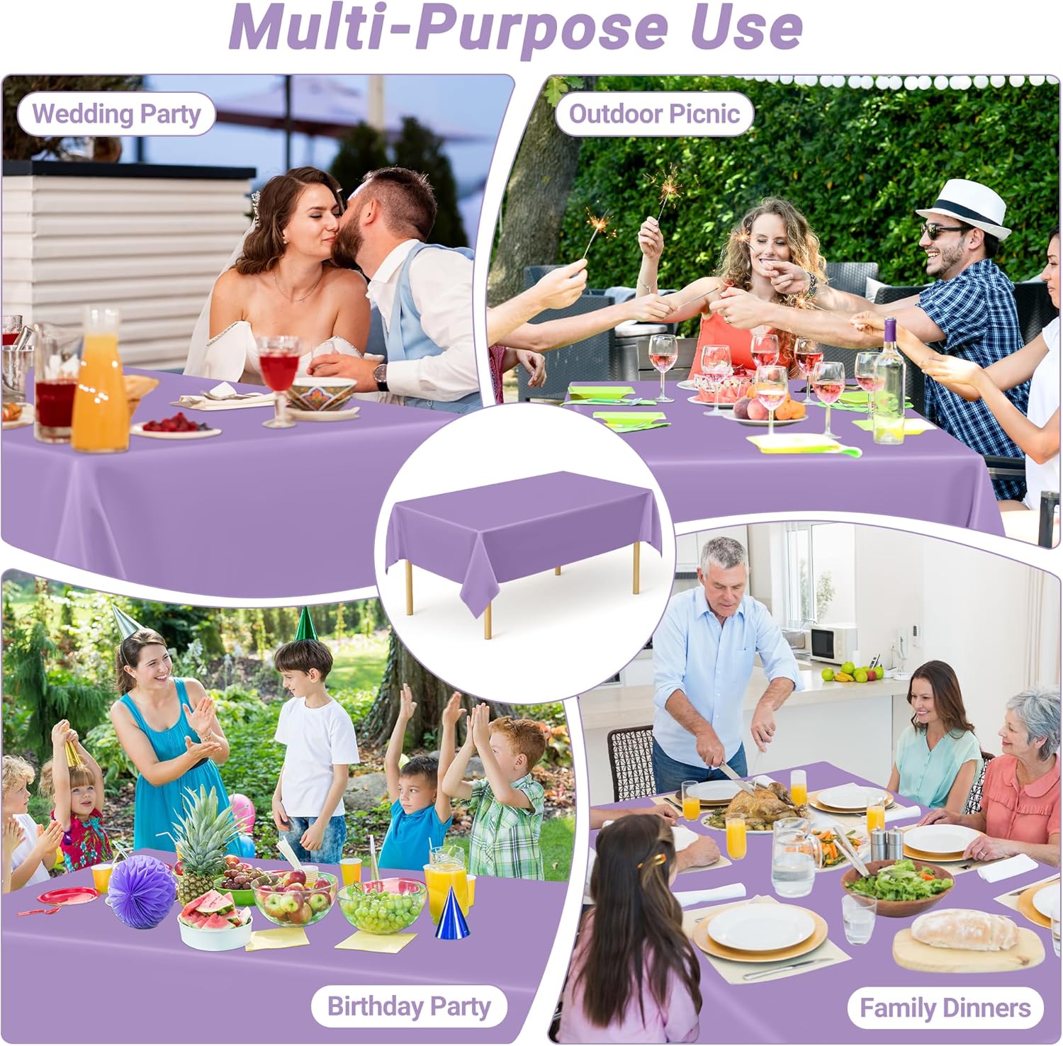 - Versatile Use: Make every event effortlessly stylish with our versatile lavender table cover. This is a table protection and a practical splash guard for messy camping trips, festivals, outdoor and party decor—all in one elegant disposable table cloth. The soothing lavender hue square table cloths instantly elevates dessert displays and pastel-themed parties.