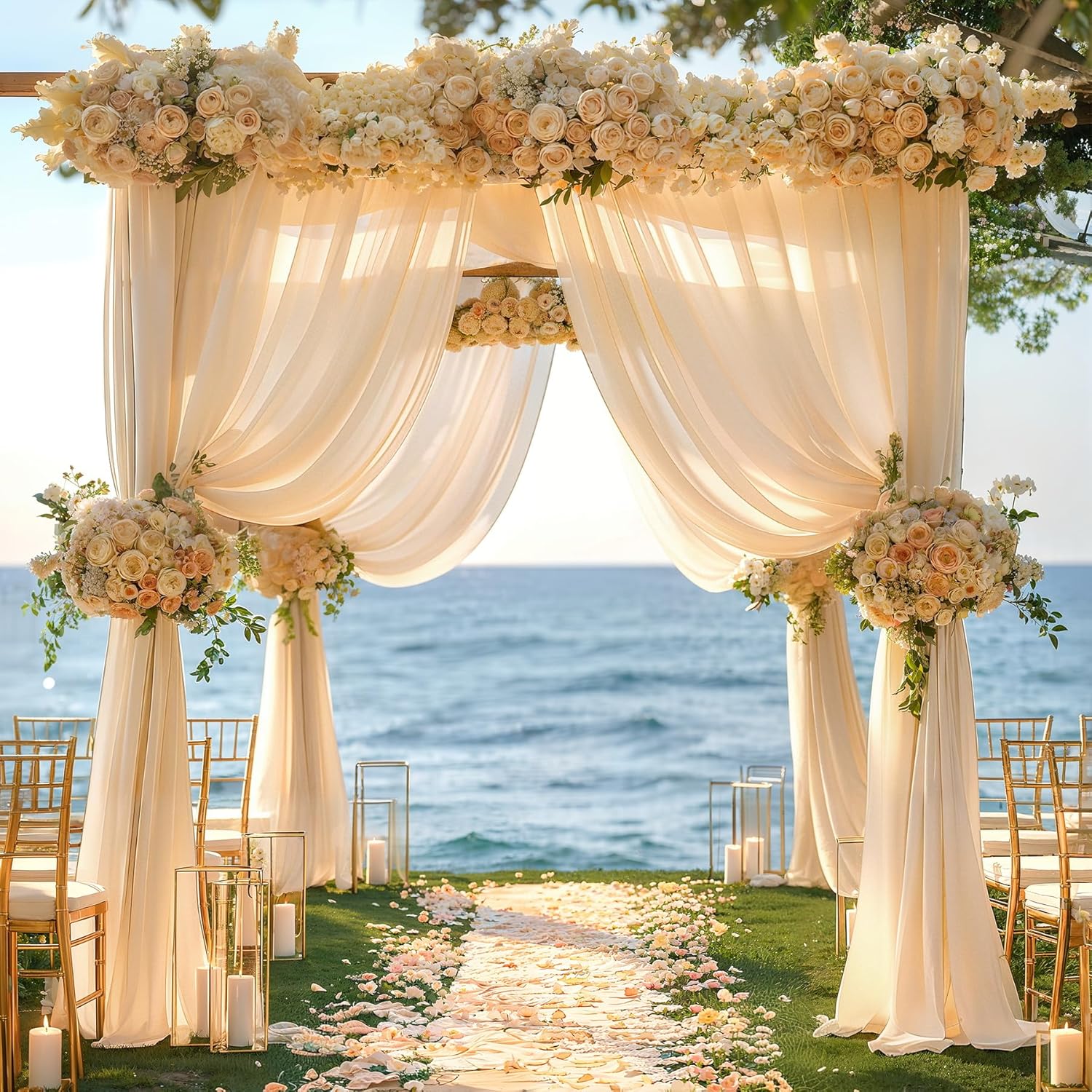 - Multipurpose Arch Draping Fabric: The chiffon fabric for draping are prefect for wedding ceremony reception, baby and bridal showers, photography background, party backdrop curtain decoration, decorative swags, window decorations and so on.