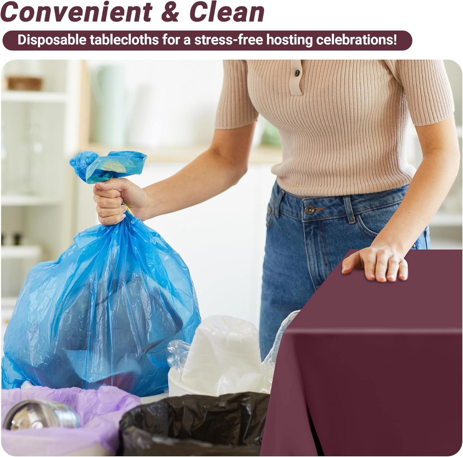QZYL 12 PCS Wine Plastic Tablecloths, 54 in x 108 in Dinner Table Cloths, Rectangle Table Cover for Birthday Party Family Gathering Wedding