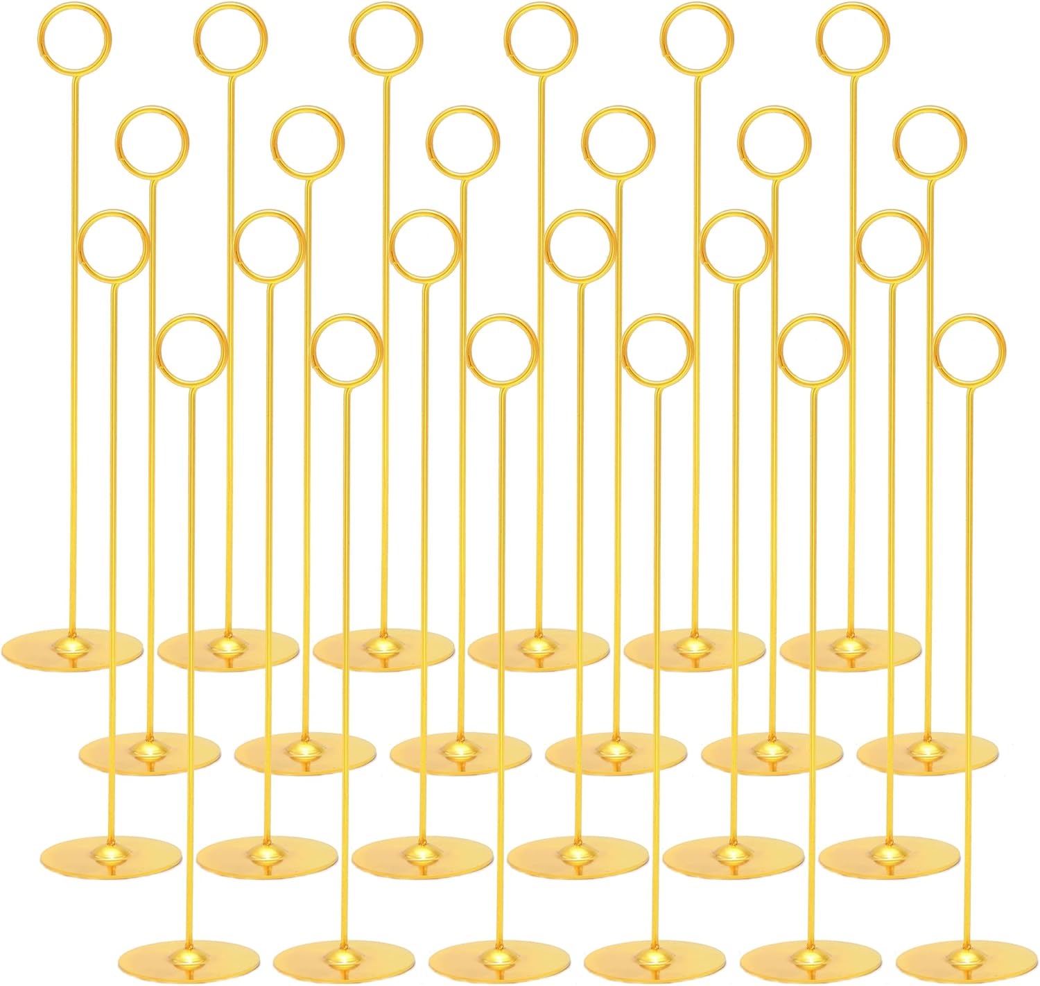 Urban Deco 24PK Table Number Holders Place Card Holders 12 Inch Table Card Holders Steel Card Holders for Photos, Food Signs, Memo Notes, Weddings, Restaurants, Birthdays (Gold 24PK)
