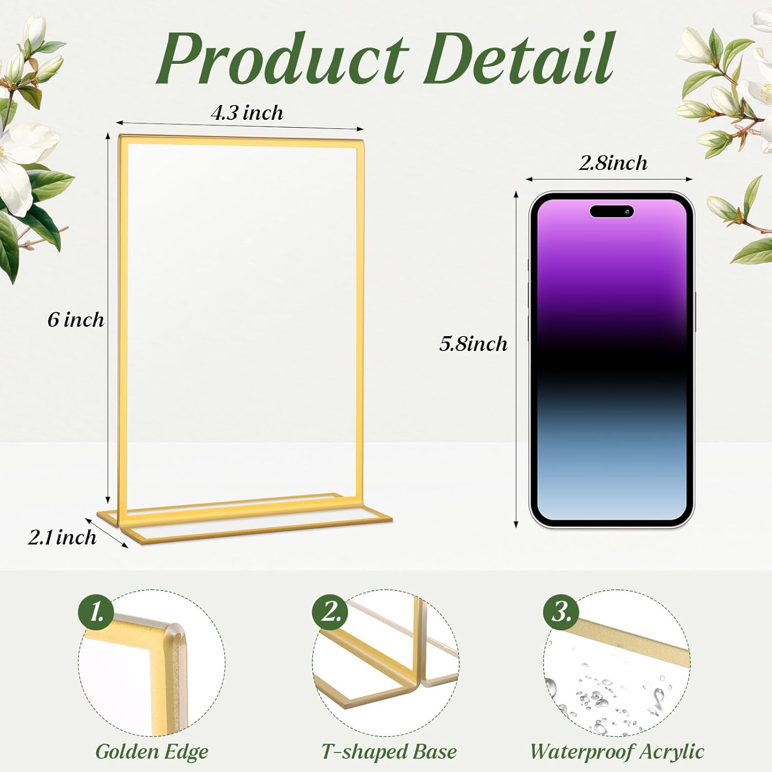 - Long-Lasting & Elegant: clear vertical acrylic frames are made from thick, crystal-clear acrylic for lasting clarity and durability, accented with a gold border that adds elegance to every setting