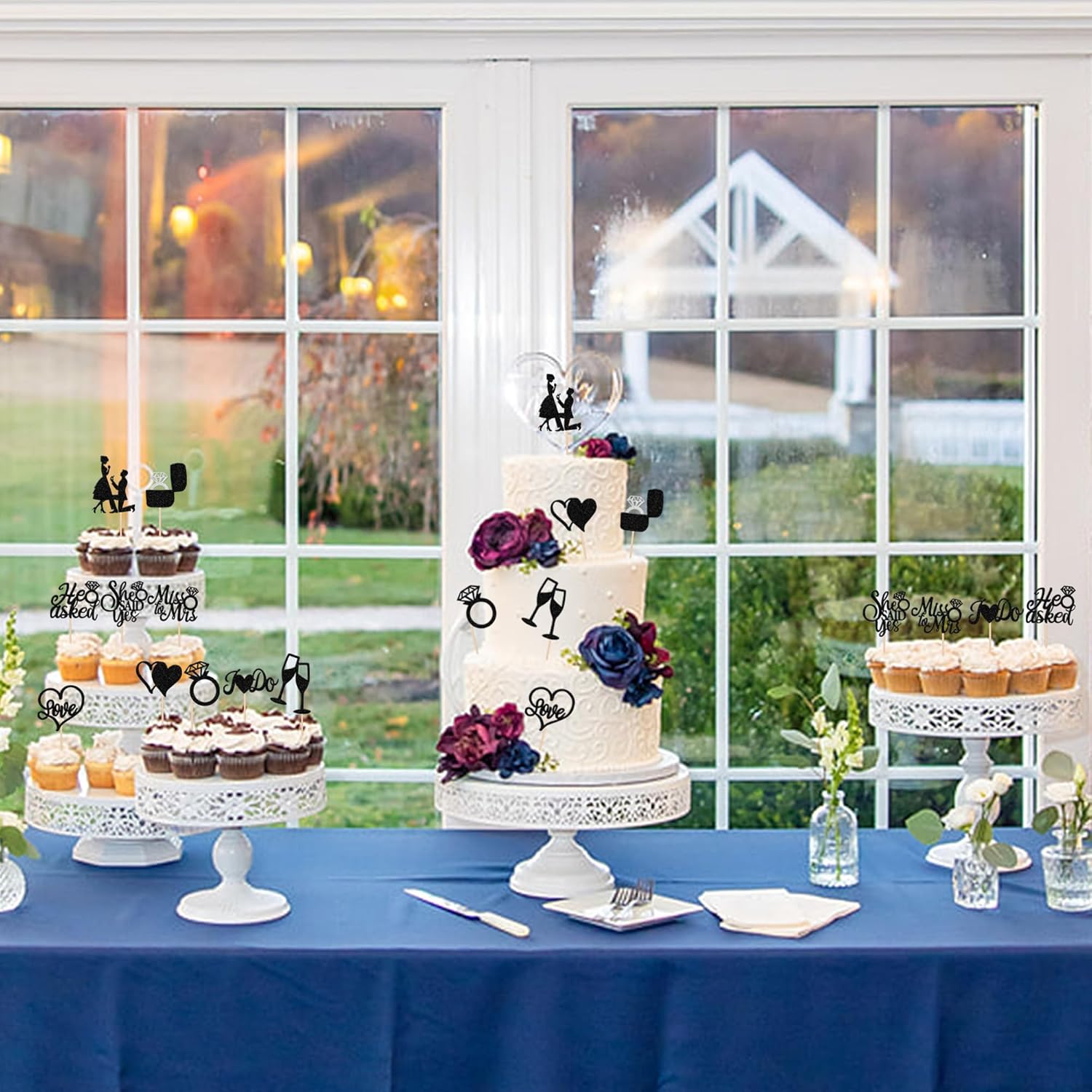 - Wide Usages ! These he asked she said yes cupcake toppers are perfect for wedding engagement theme party, he asked she said yes theme party, bridal shower theme party, miss to mrs love theme party, bachelorette theme party cupcake decorations, they can make your cupcake more attractive and bring the fun to your party.You can also apply them for ice cream, fruits, cookies and other desserts.