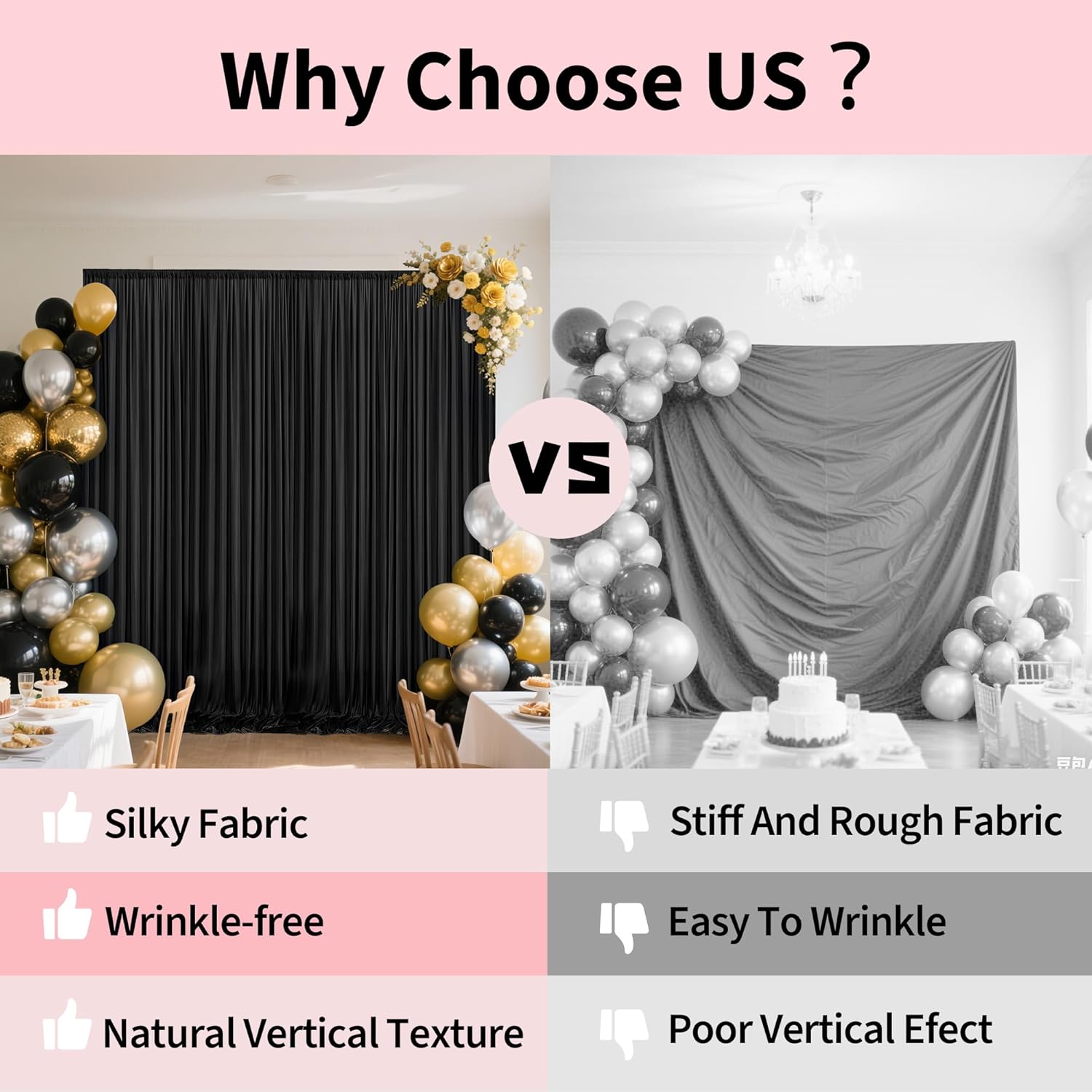 - Material: Backdrop curtains is made of high-quality polyester fabric, which has a soft texture, natural sagging, and is not easy to wrinkle. It can be tightened or stretched to determine the desired background width, perfectly decorating event or photo backgrounds
