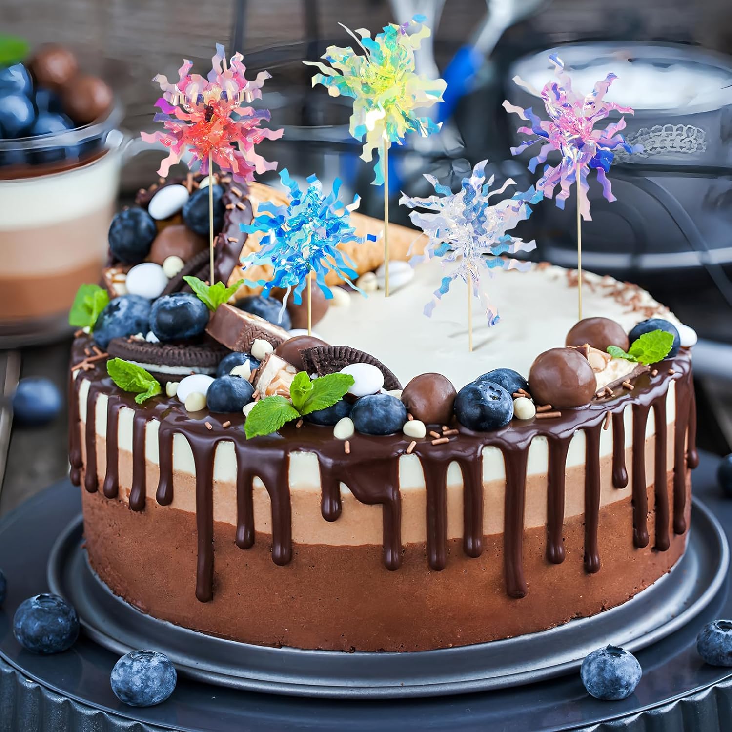 - Sparkling Firework Design: Each topper features a brilliant firework-style tinsel design that shimmers in the light, instantly enhancing your cake’s appearance and festive vibes.