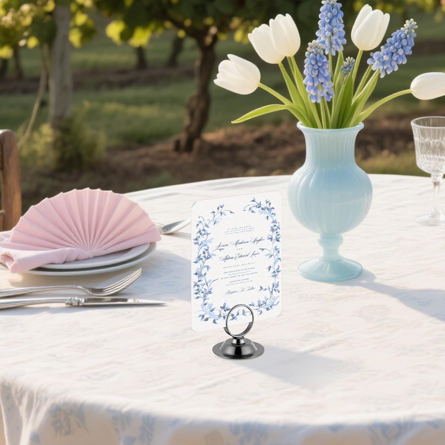 - Heavy and sturdy base: Table number holders have wide, solid and sturdy steel base to keep your cards remain in standing position even if the occasion is in outdoor settings, our finely made table card holders won’t fall over to ruin your elegant presentation