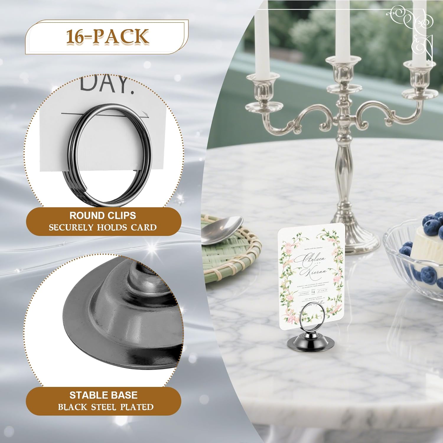 - Package includes: Set include 16 pieces table sign holders, size of photo holder is 2.16 inches, a total of three colors for you to choose, gold, black, silver, you can choose according to your occasion need