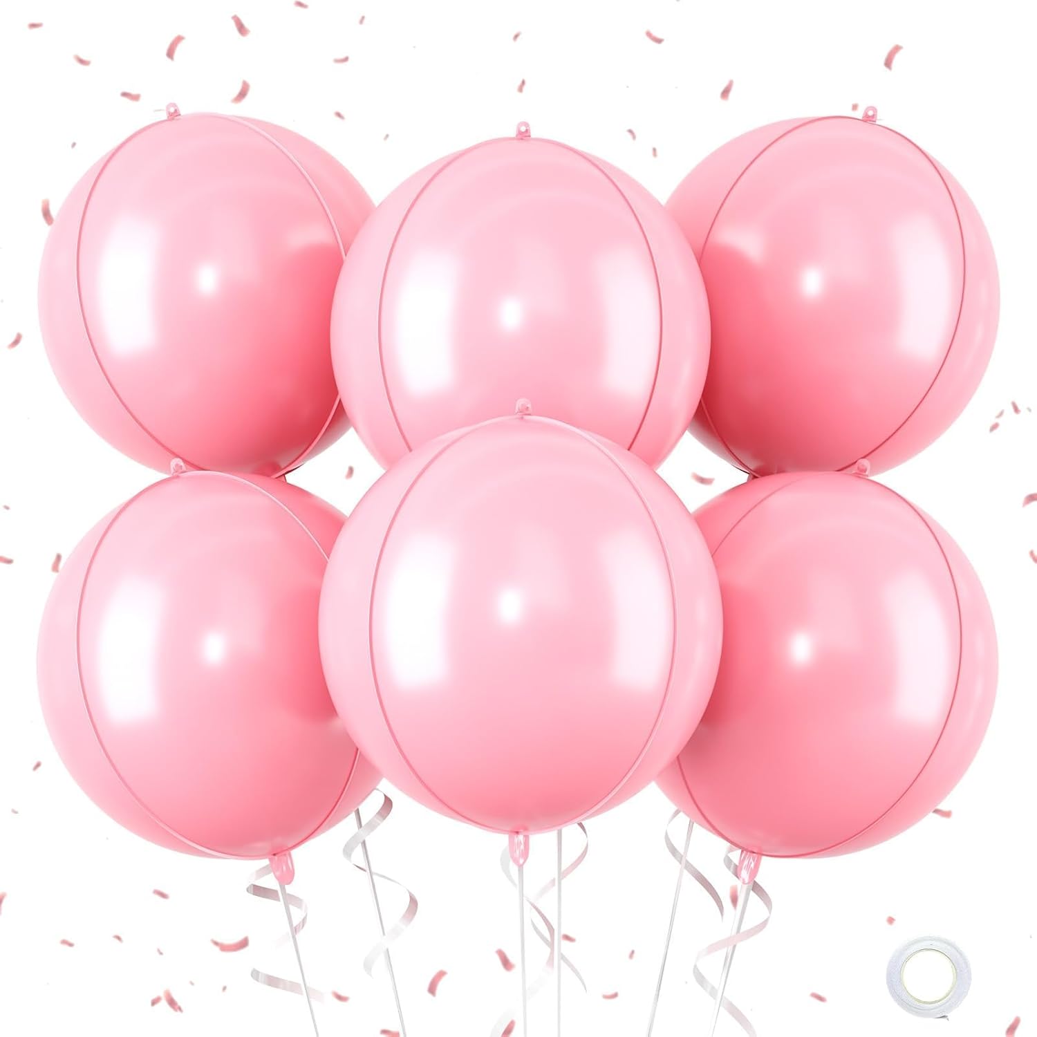 Giant 4D Foil Balloons, 6Pcs Large Metallic Pastel Pink Round Balloons, 22 Inch Big Round Foil Balloon for Pink Birthday Party Baby Shower Wedding Decorations