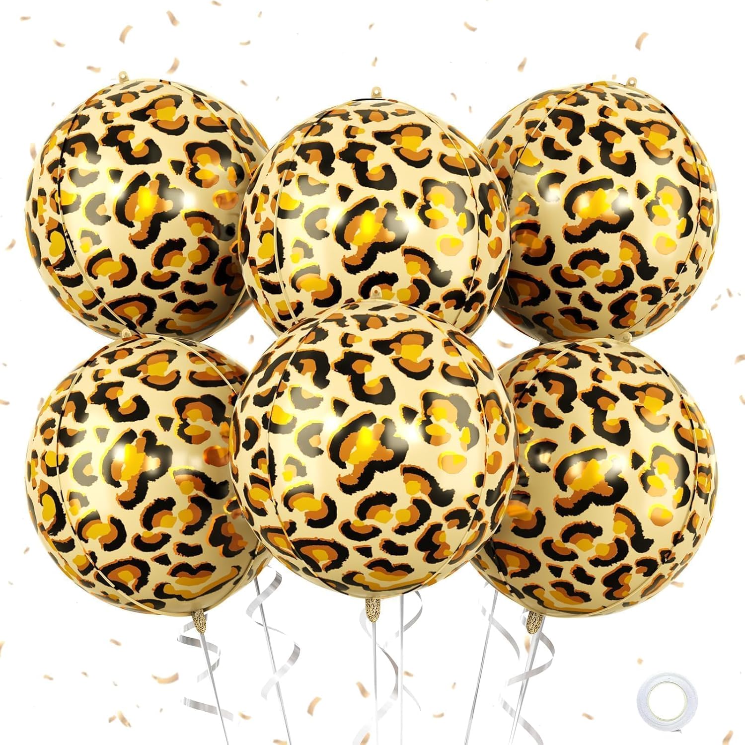 Leopard & Cheetah Print Foil Balloons, 6Pcs Large Metallic Leopard print Round Balloons, 22 Inch Big Round Foil Balloon for Camo Animal Jungle Adventure Birthday Party Baby Shower Wedding Decorations