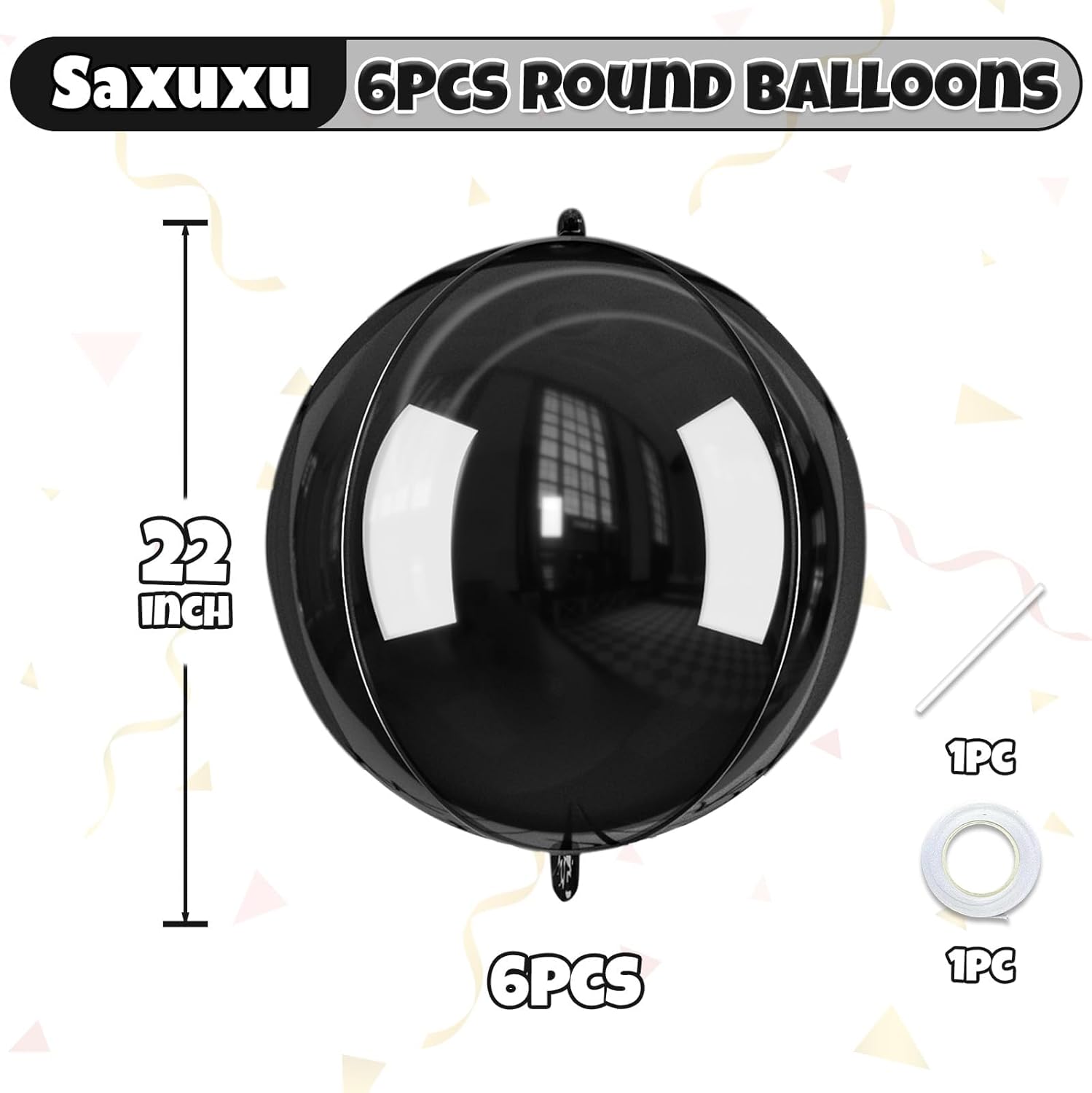 - Package Contains β 6 pcs 22-inch black round 4D foil balloons, 1 pc straw and 1 pc ribbon. These large, eye-catching balloons are perfect for elevating your party decor with a bold and stylish touch.
