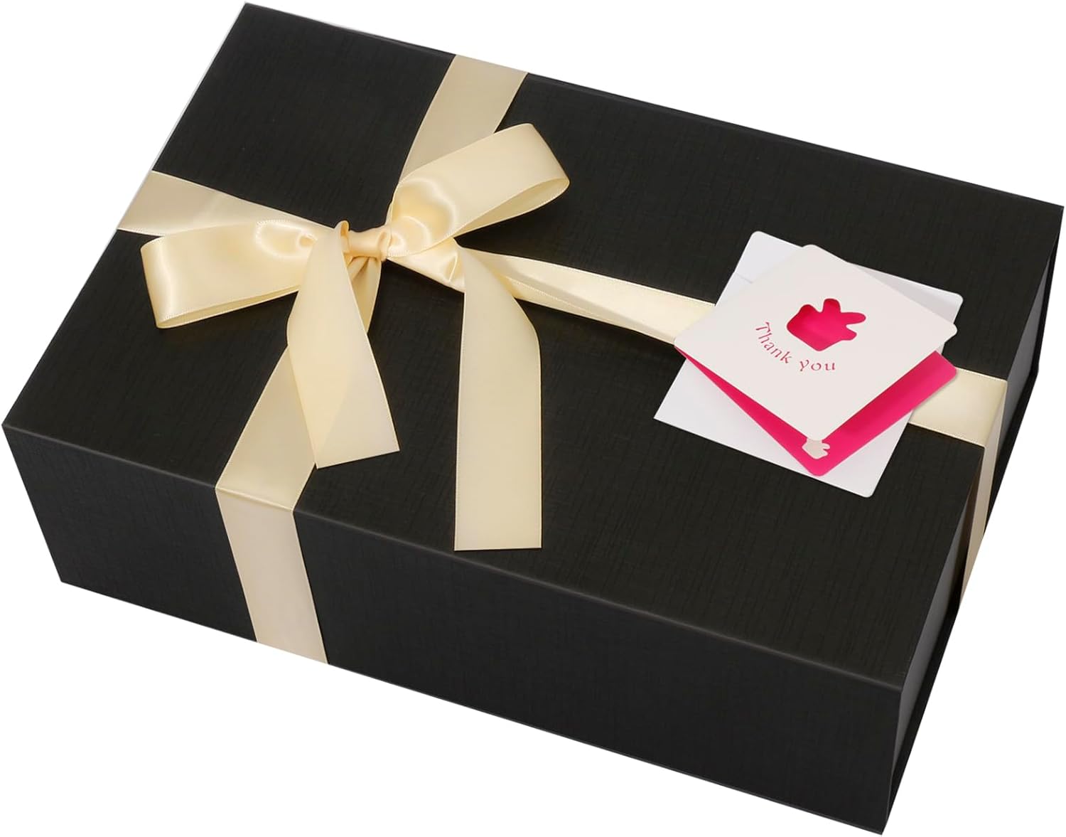 - SIZE:The gift box size 13.75"x9"x4.5",contains a ribbon,a gift card, an envelope.This large gift box is suitable for snacks,cosmetics,perfume,jewelry,candles,mugs,souvenirs and other items.