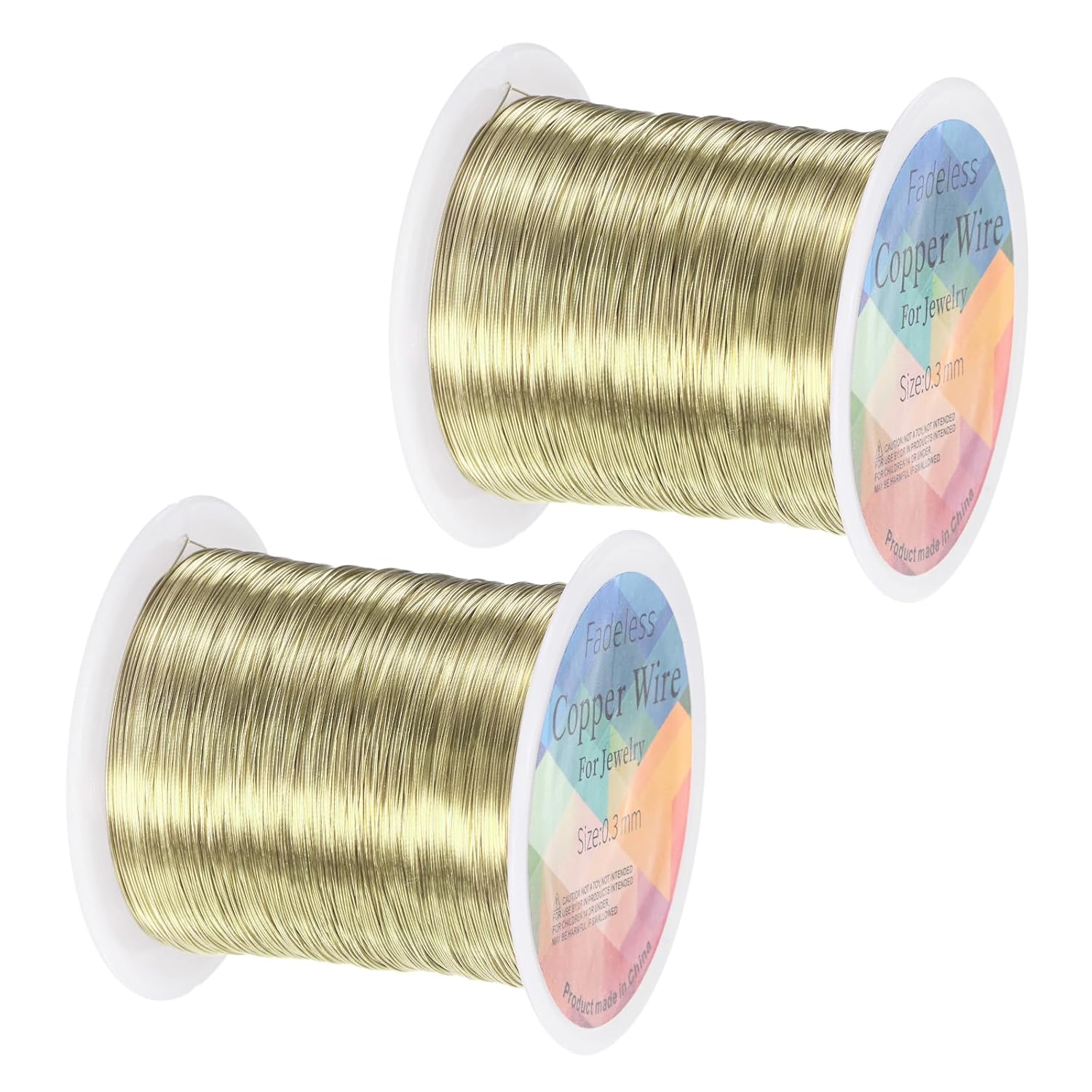 2-Rolls 0.3mm Jewelry Wire, 28 Gauge 328FT Craft Wire Copper Beading Wire for Jewelry Making/Planting/Weaving/DIY Crafting, Soft Metal Wires [100M, Light Golden]