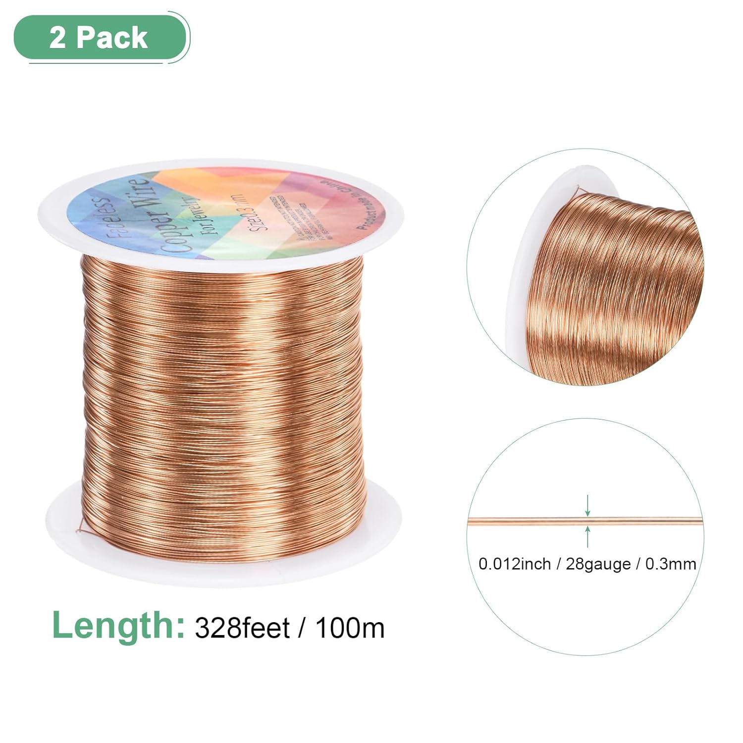 - [Size & Package] - Wire Diameter: 0.3 mm/ 28 Gauge/ 0.012 inch; Each Roll Length: 100 M/ 328 Feet; Package Includes: 2 Rolls x Craft Copper Wire