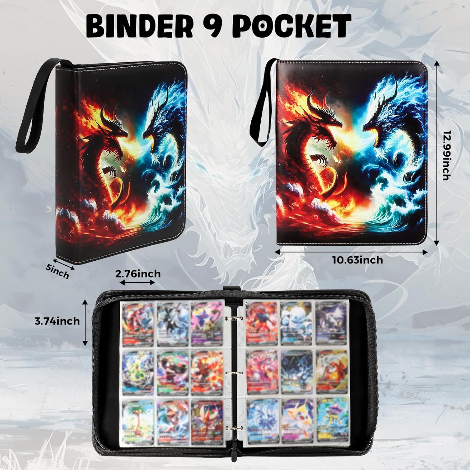 Premium Exo-Tec 9-Pocket Trading Card Binder - 900 Side Loading Pockets for TCG, Board Games & Collectibles - Durable Water-Resistant Card Album with Secure Zip Closure