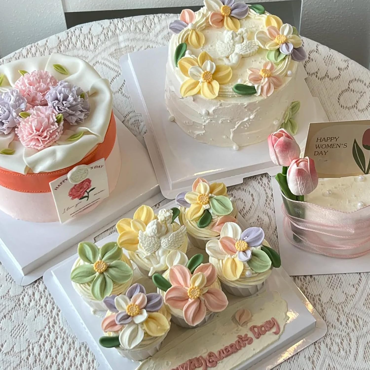 - Flower Fondant Mold Set: This set includes 5 different silicone molds featuring various flower shapes. Each mold is beautifully detailed to help you create elegant and realistic floral designs for your desserts. Please refer to the product images for style details.