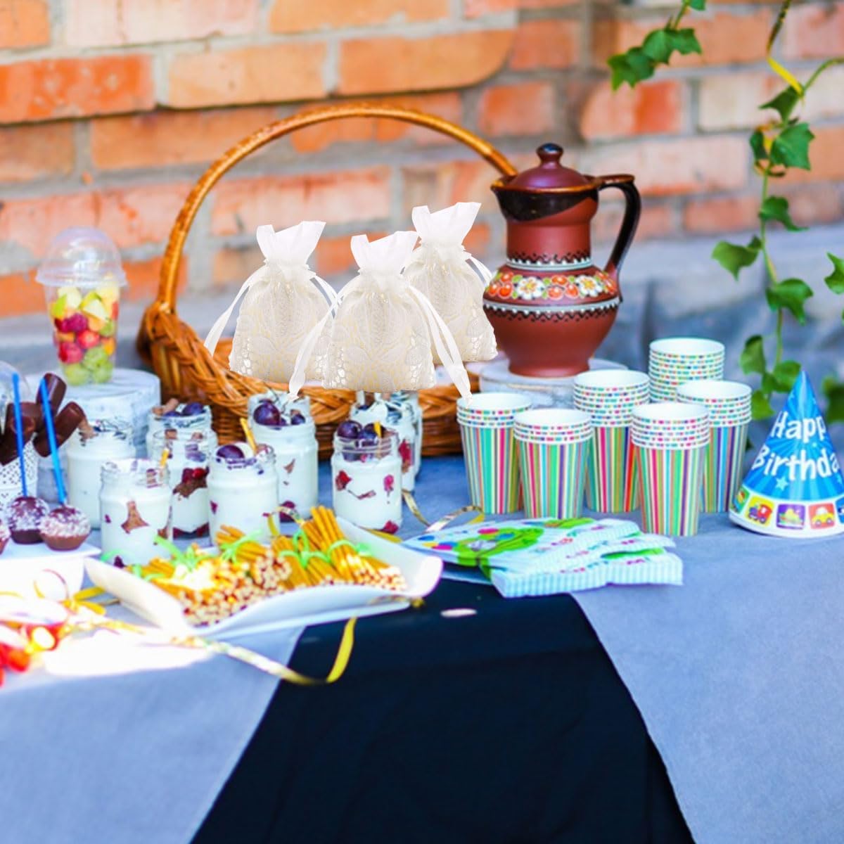 - ๐๐๐ฌMaterial:These lace gift pouch bags are made of snow yarn and cotton edge,lightweight,durable and washable.Can act as bags or candy bags for festival,wedding and party.