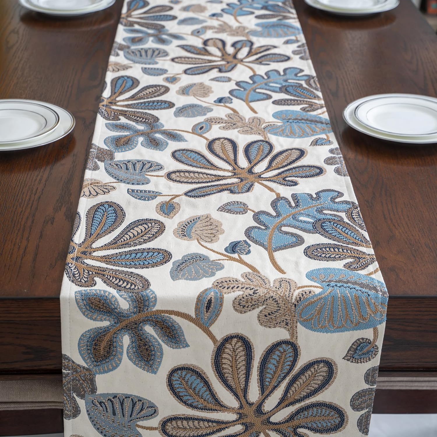 Mika Home Tropical Leaf Table Runner for Home Decor 13X72 Inches Blue Brown Seasonal Dining Table Decoration for Home