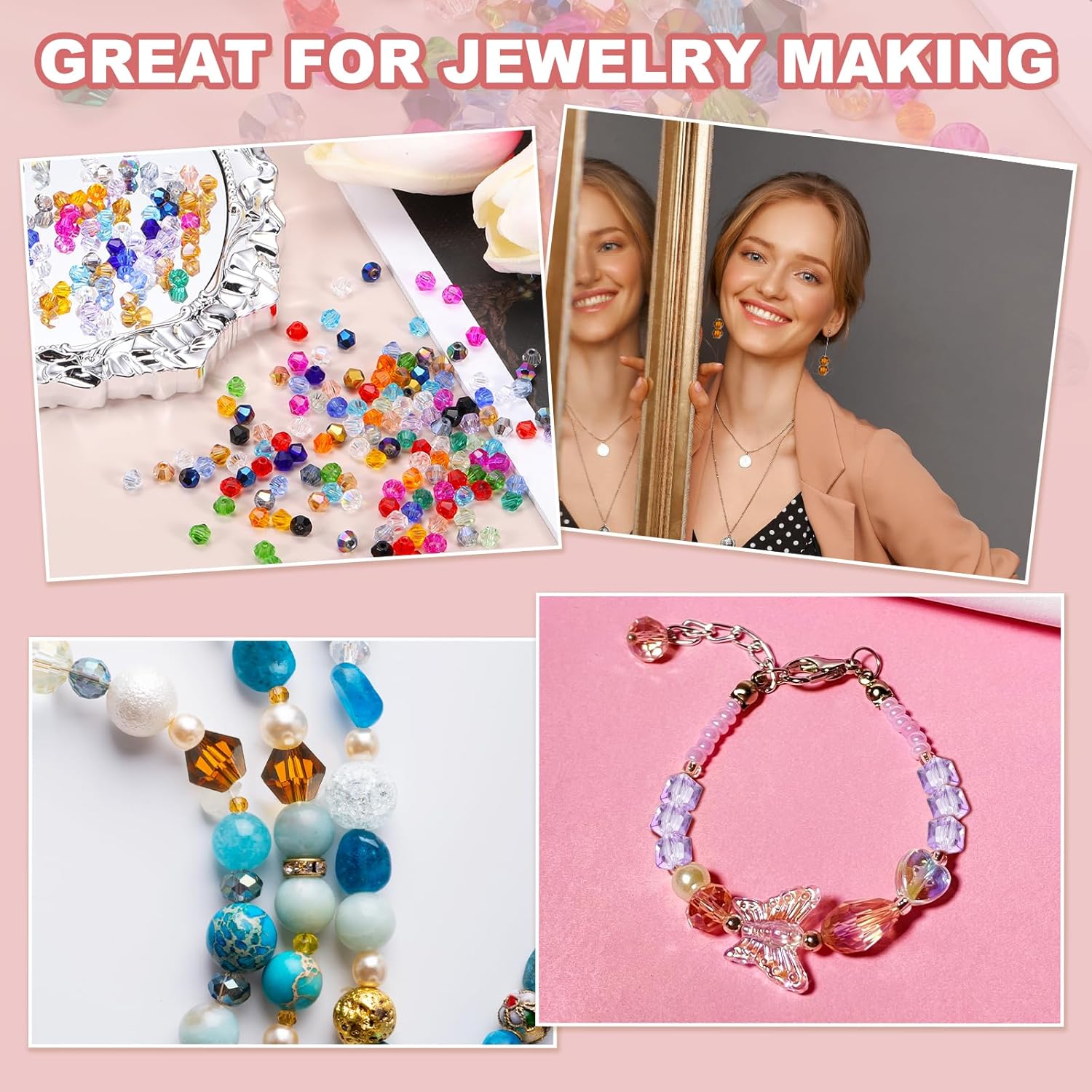 - Application: These bicone crystal beads are a good choice for earrings, bracelets, necklaces, anklets, rings, brooches, and keychains, and also can be used as decorations for chandeliers, suncatchers, bead curtains, wind chimes, wedding centerpieces, Christmas ornaments, and gift embellishments.