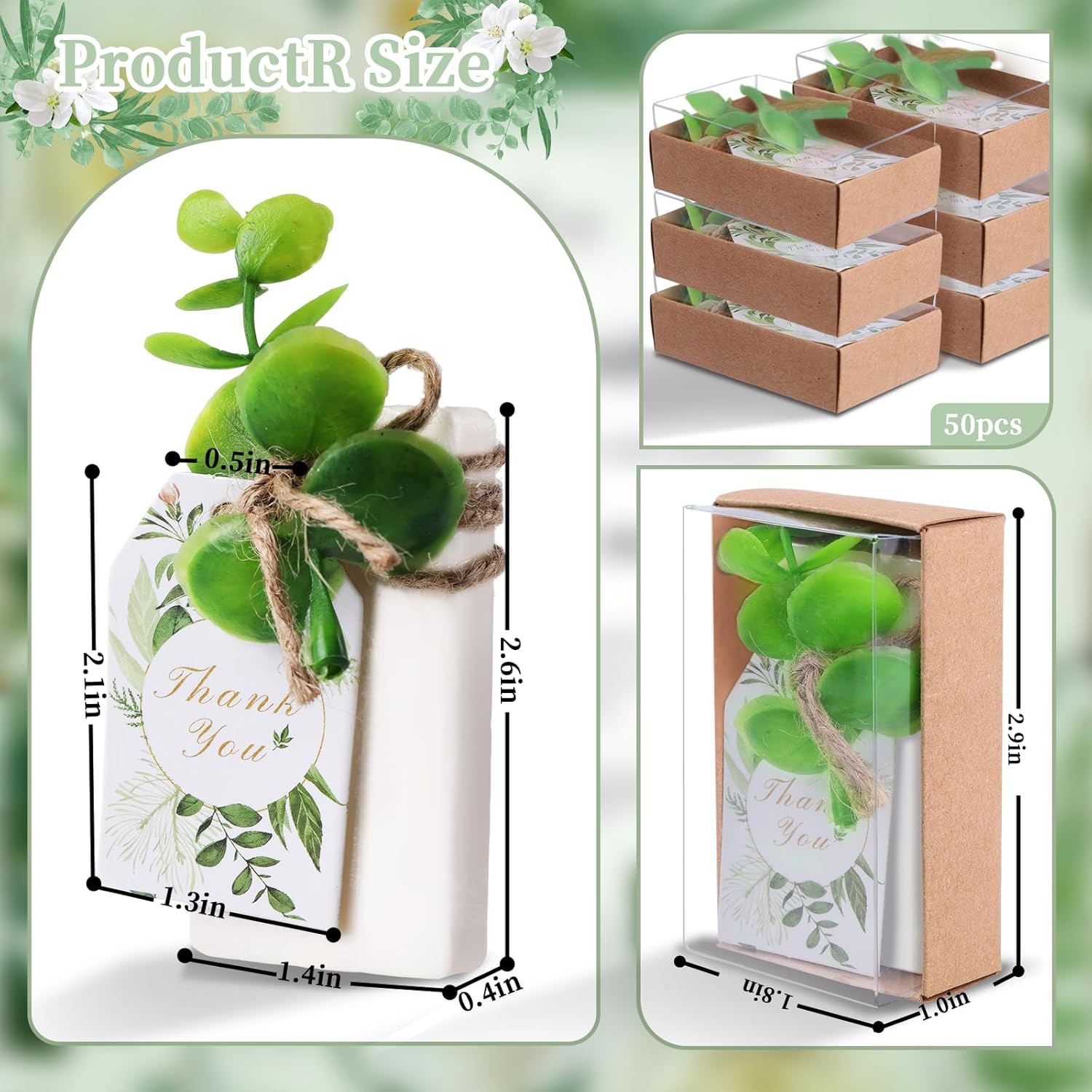 - Party Favors:You will get 50PCS handmade soaps, each individually boxed, in a clear box for your convenience and time saving, each white soap comes with a thank you label that says ‘Thank You’, perfect for your party decorating needs