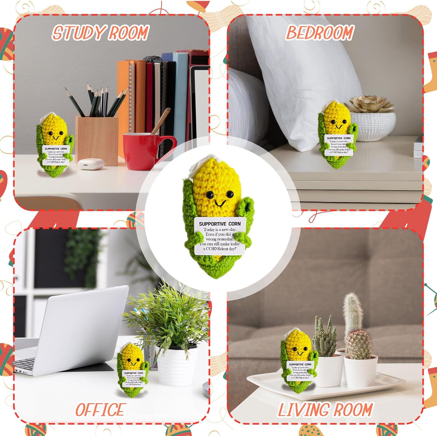 Emotional Support Crochet Corn,Lovely Gift for Friends,Mom,Dad,Grandpa,Grandma,Colleagues,Home Office Decoration