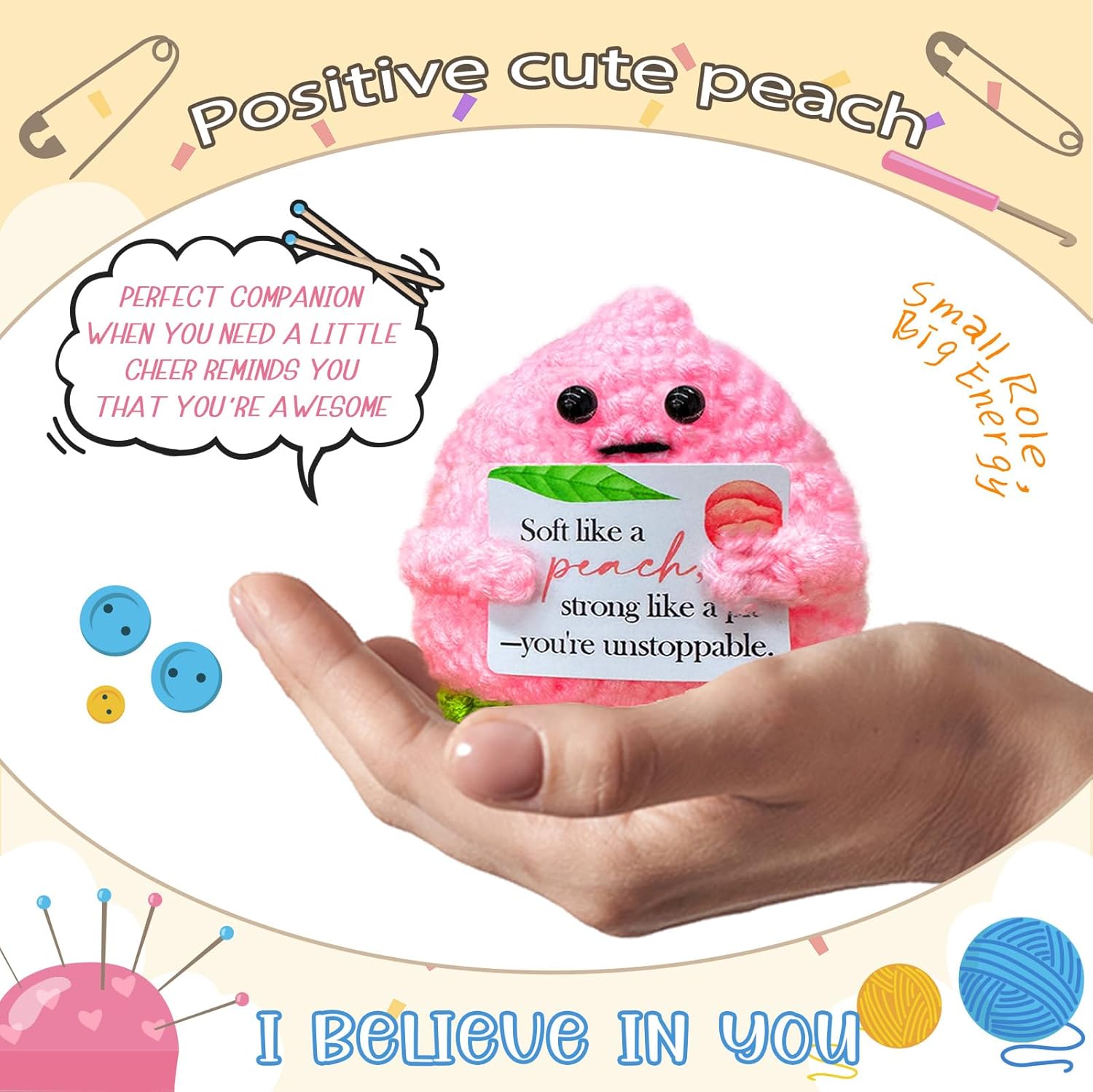 - 【Positive crochet companion】This optimistic doll always brings warm power.It always reminds us of the good side of life and helps us maintain hope and courage in difficult situations.This companionship makes the heart stronger.