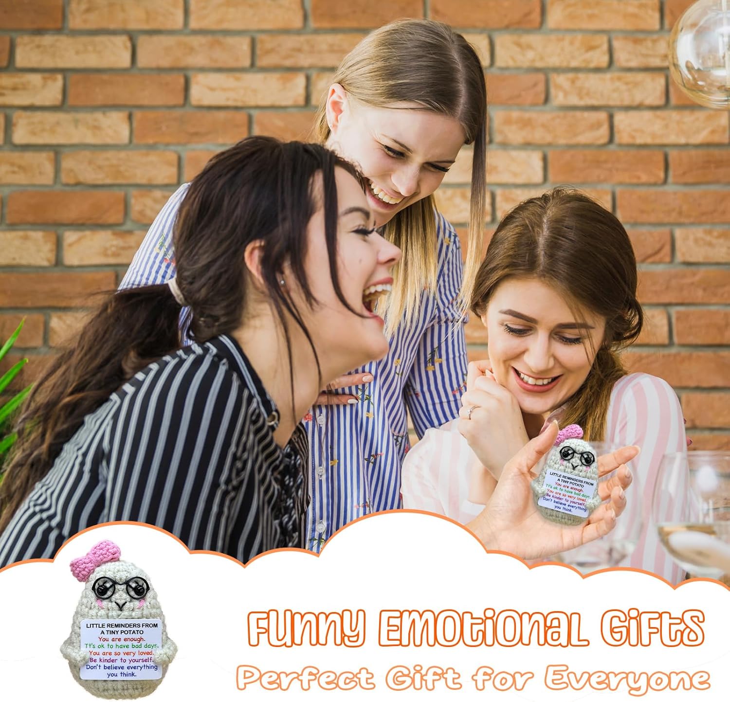 Handmade Crochet Positive Potato Gifts for Women Men Daughter Son Birthday,Teacher Nurse Week Graduation Gift,Handmade Kintted Crochet Doll with Emotional Encouragement Card,Desktop Decors