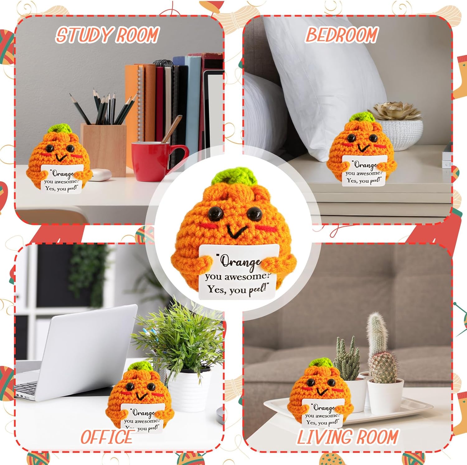 Emotional Support Crochet Orange,Lovely Gift for Kids,Friends,Mom,Dad,Grandpa,Grandma,Colleagues,Classmates,Graduation Gift,Positive Orange,Home Office Decoration