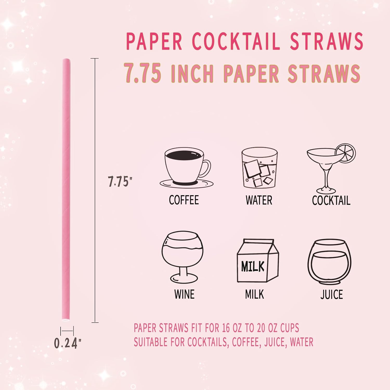 GLUJASBIO Pink Paper Straws Drinking Disposable Pastel Straws Bulk Party Suppliers for Girls Party, Baby Shower, Birthdays, Weddings, 7.75" x 0.24"