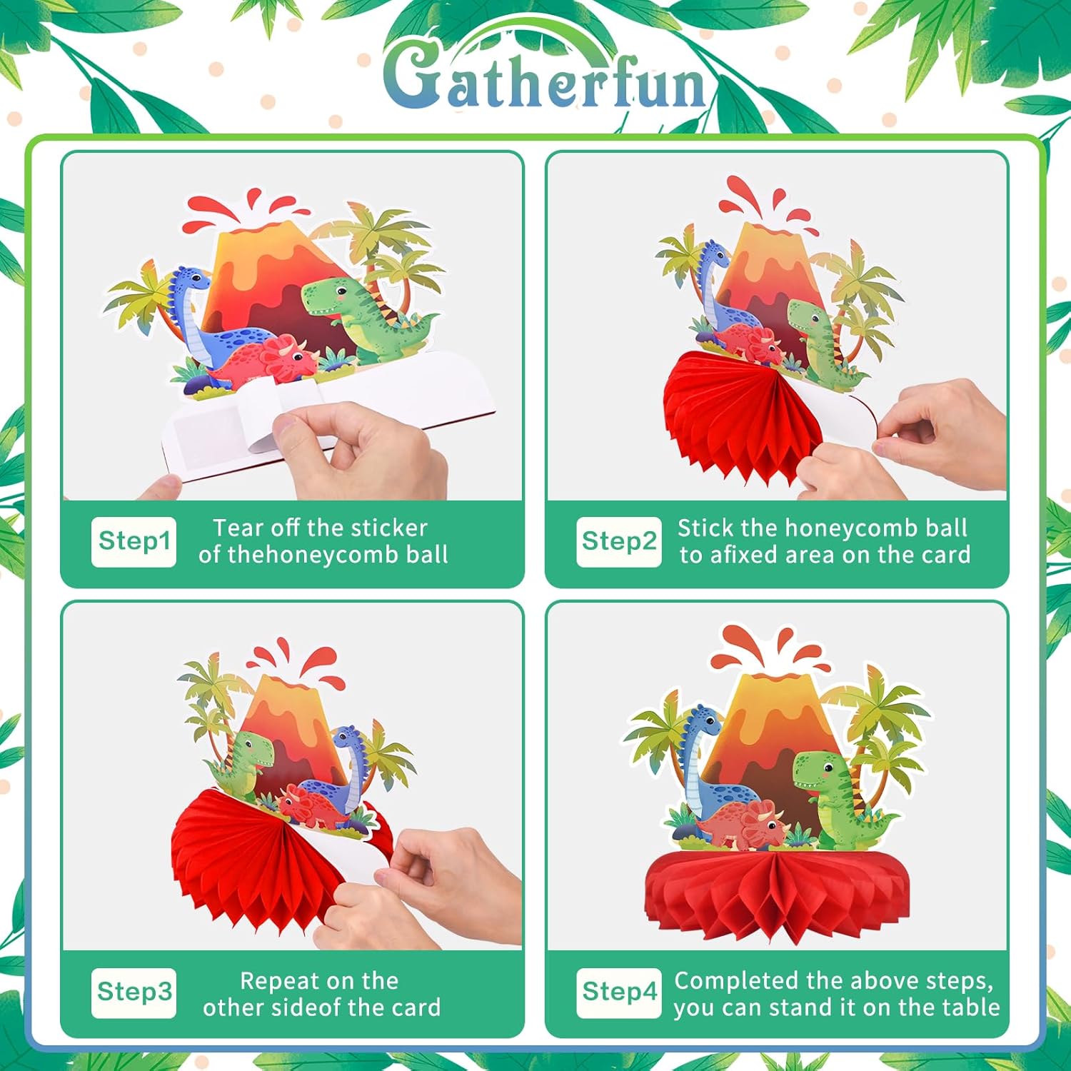 - 4. Our honeycomb Dinosaur Party Decorations are crafted to add a pop of fun and adorability to your event. Perfect for sprucing up your festivity tables or as charming photo props, these dino delights are versatile enough for children’s parties, family gatherings, or any dinosaur-themed occasion, ensuring a lively and creative celebration.