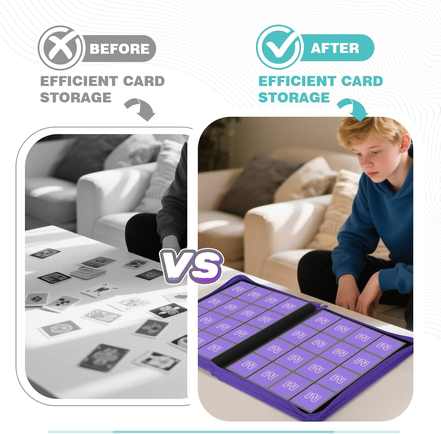 - 【ENSURING LONG-TERM STORAGE】 The card sleeves are made from acid-free, tear-resistant, and scratch-proof materials, ensuring durability for frequent use while keeping your cards securely organized and in excellent condition. The side loading pockets facilitate effortless insertion of cards and effectively prevent them from slipping out. Each page is reinforced with padding and designed to resist warping, making them perfect for displaying cards.Additionally, the card pages have an ultra-clear design, making display and viewing easy.
